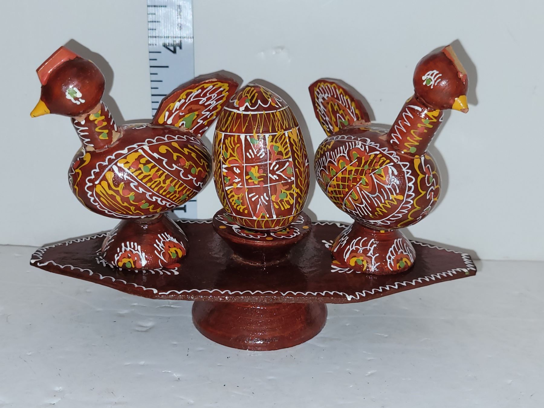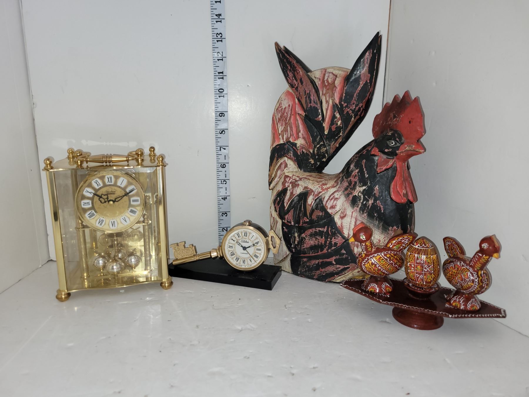 Wooden Rooster, Vtg Chickens w/ Egg & Pedestal Vtg USSR Carba Alarm Clock Heirloom Quartz Clock