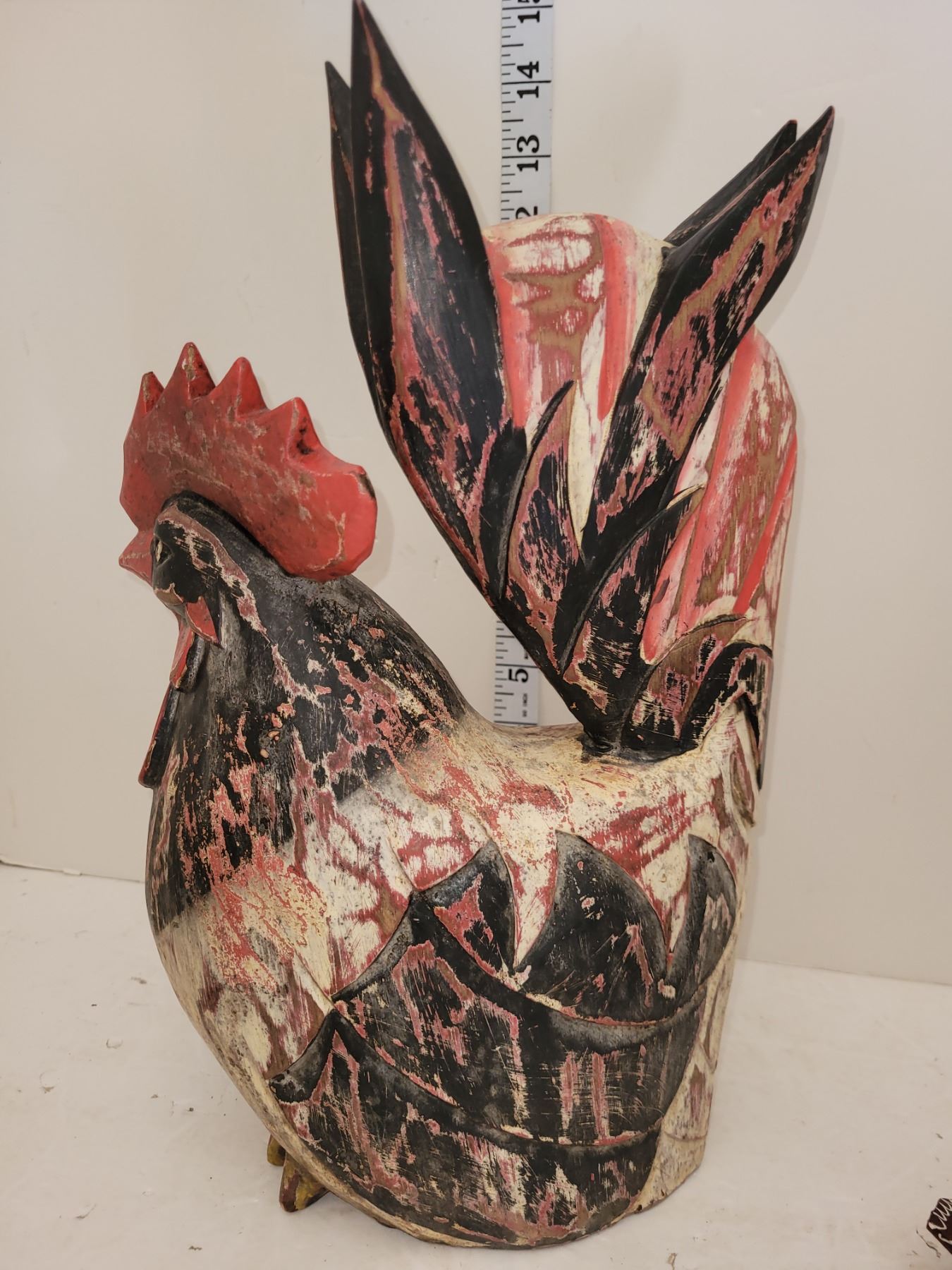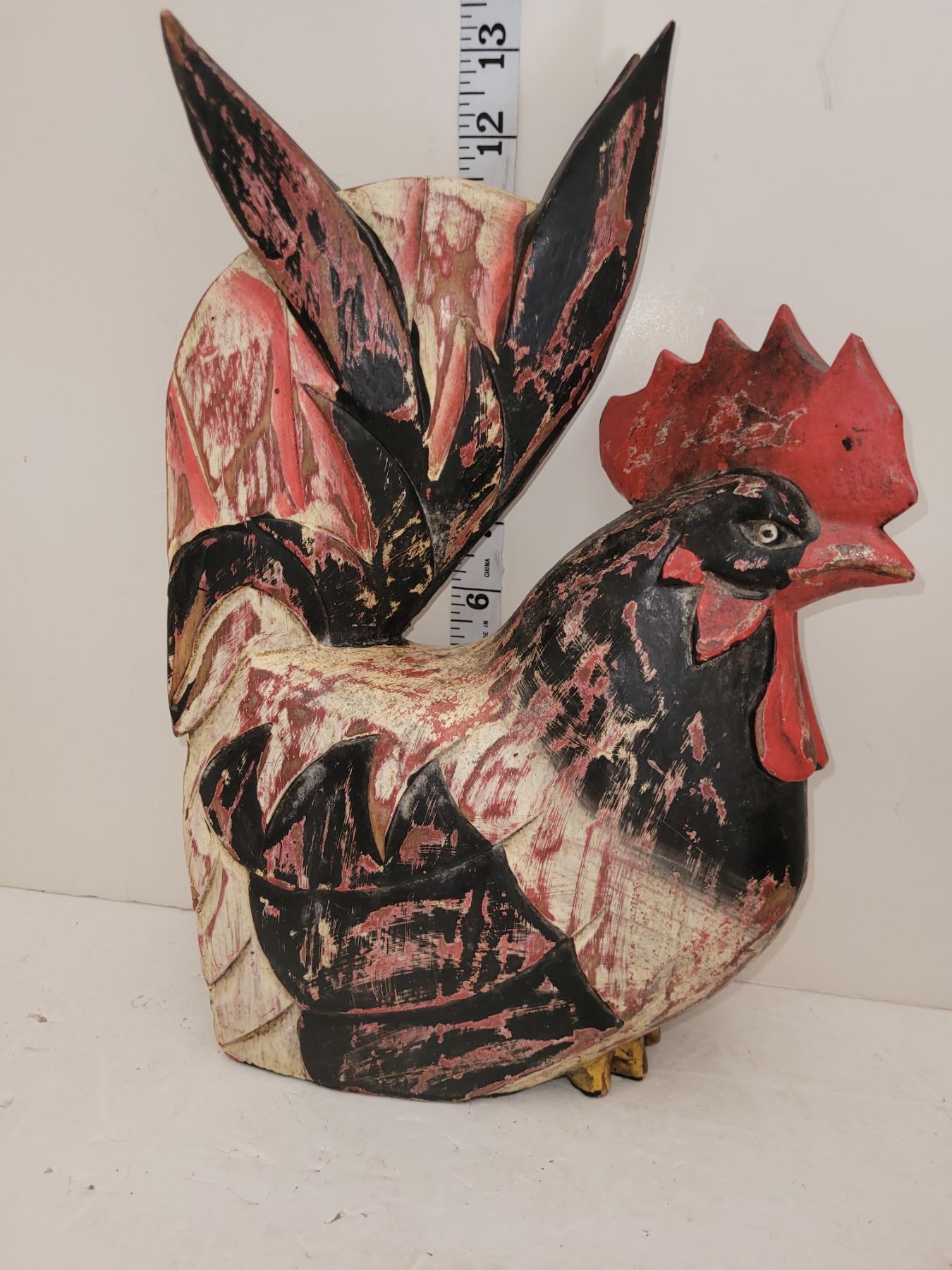 Wooden rooster 13"h x 8" w. chickens are vintage, hand carved & painted. Vintage USSR is from the 1960s-1970s, not in working condition. Quartz clock has never been used, battery operated brass cock. Beveled etched glass on front and etched glass on sides.