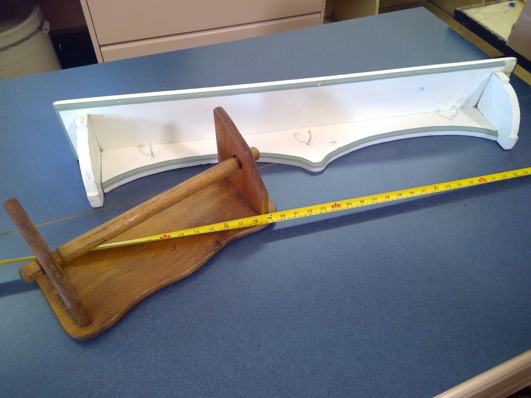 Wooden Shelf with Hooks, Wall Mount, and Paper Towel Holder
