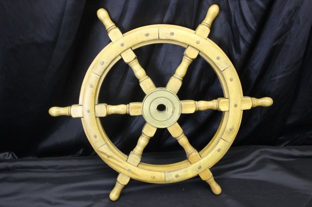 This is a wonderful decorative wooden ship wheel. This piece is in wonderful condition and measures 24 1/2" in diameter.