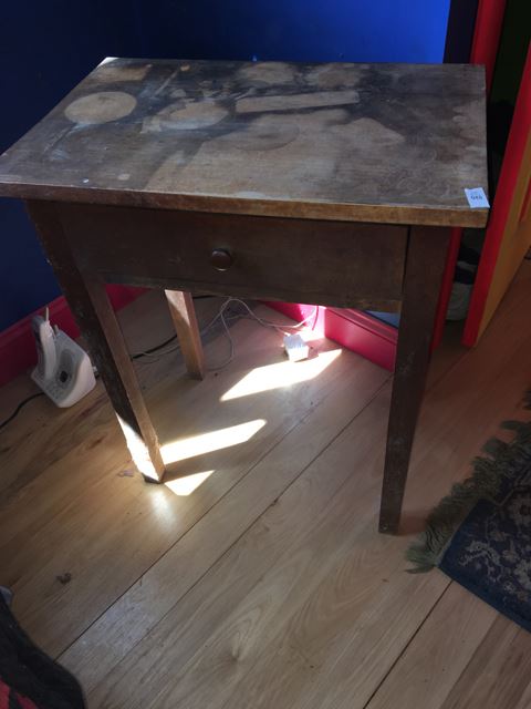 Country wooden siden table measures approx. 24x16x29. This lot can be picked up in Woodbury CT for local buyers, or our shipper can pick up and ship to your location.