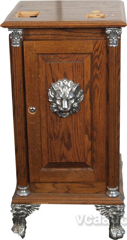 Wooden Slot Machine Stand w/ pewter lion figural face on door - 17" x 17" x 34" tall
