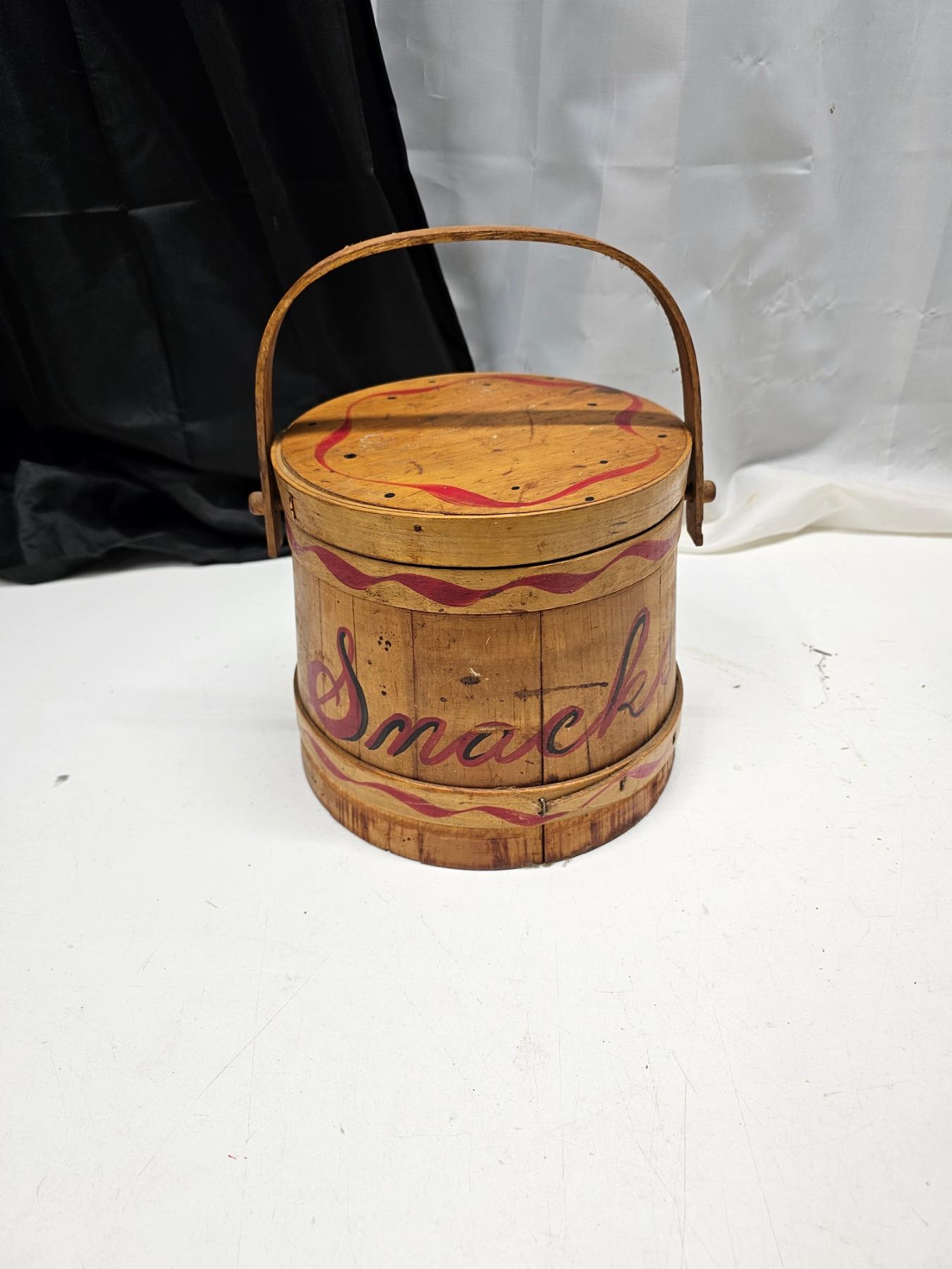 Wooden Snacks Bucket w/ Lid 9" x 7.5"