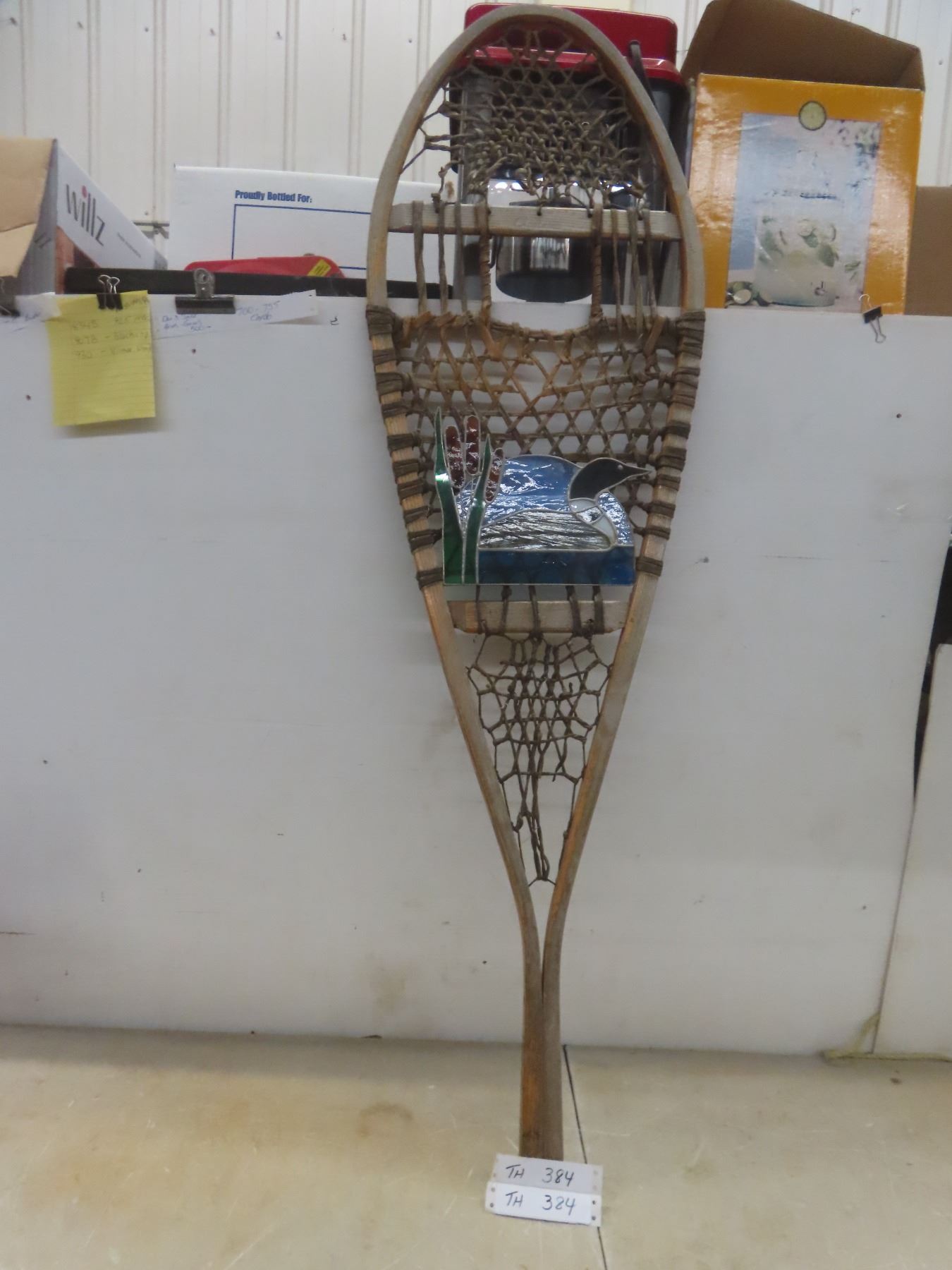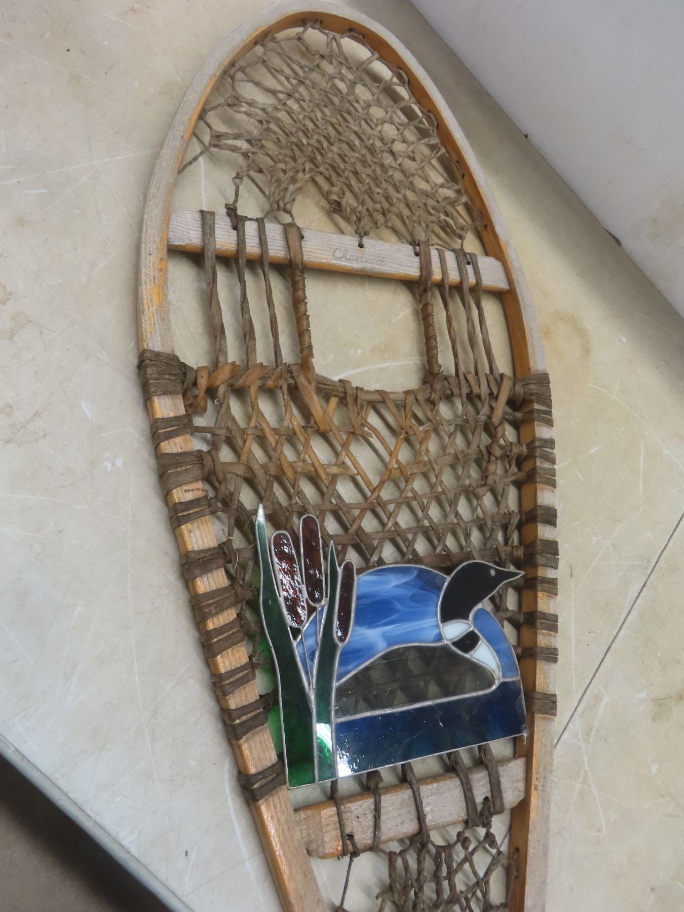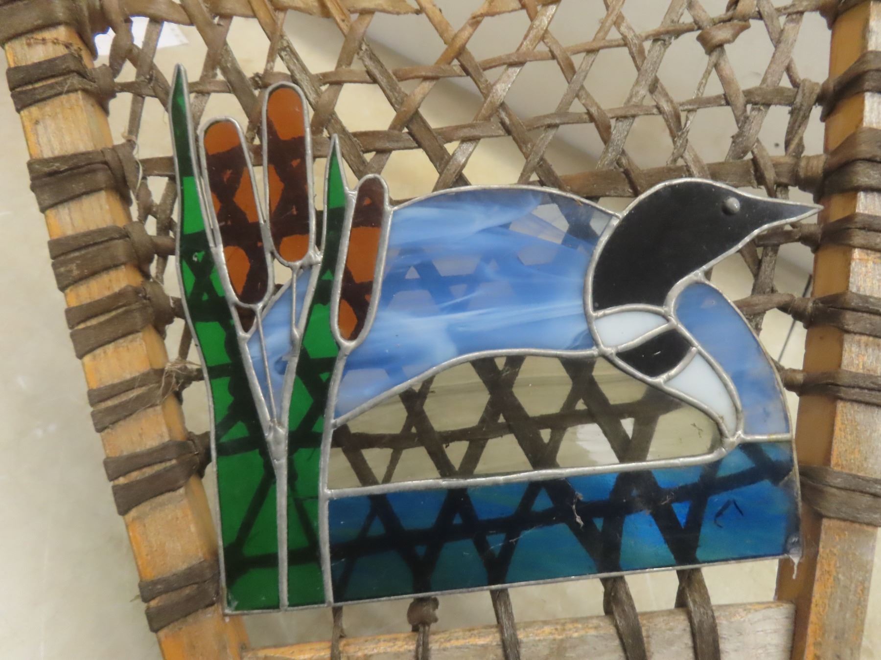 Wooden Snowshoe, 48", Decorated With Stained-Glass Picture