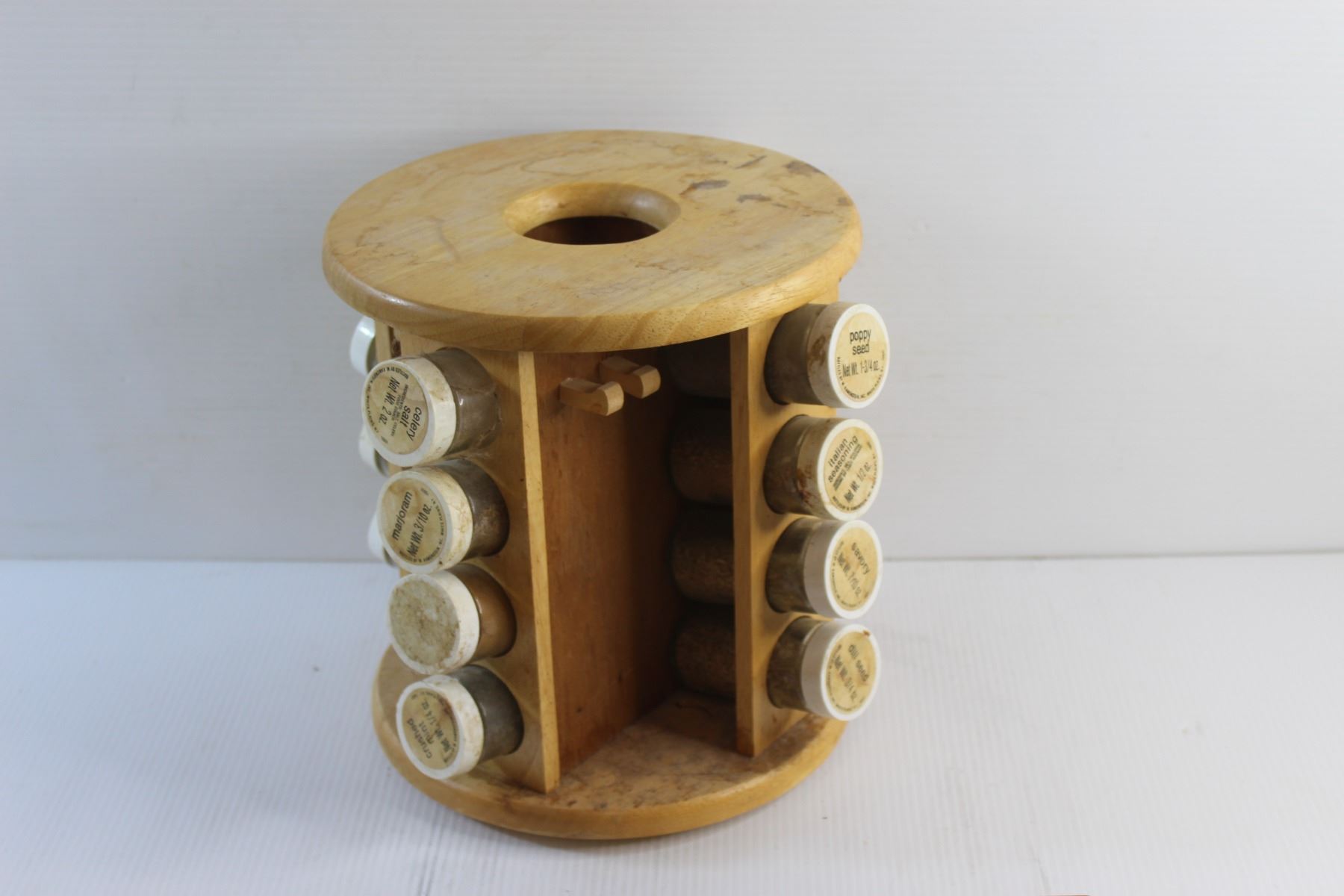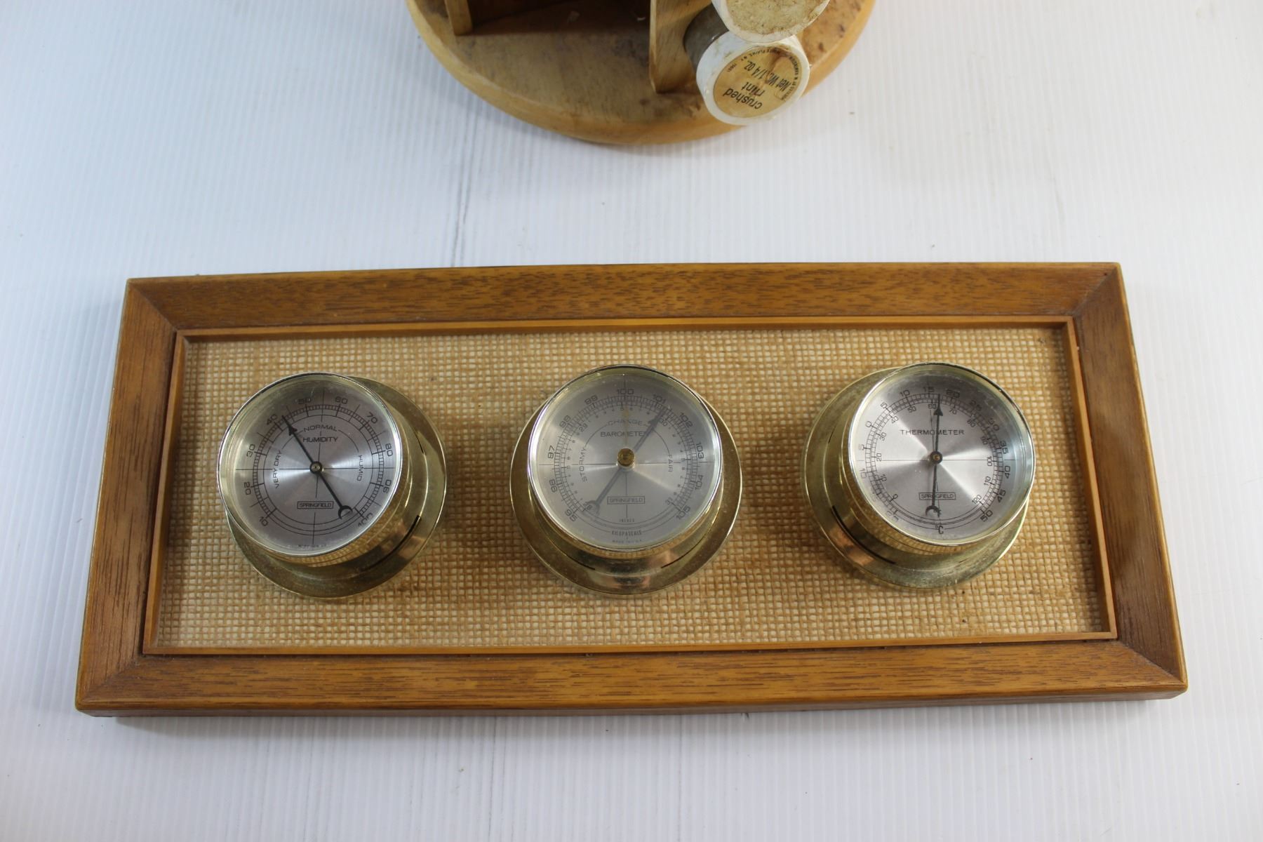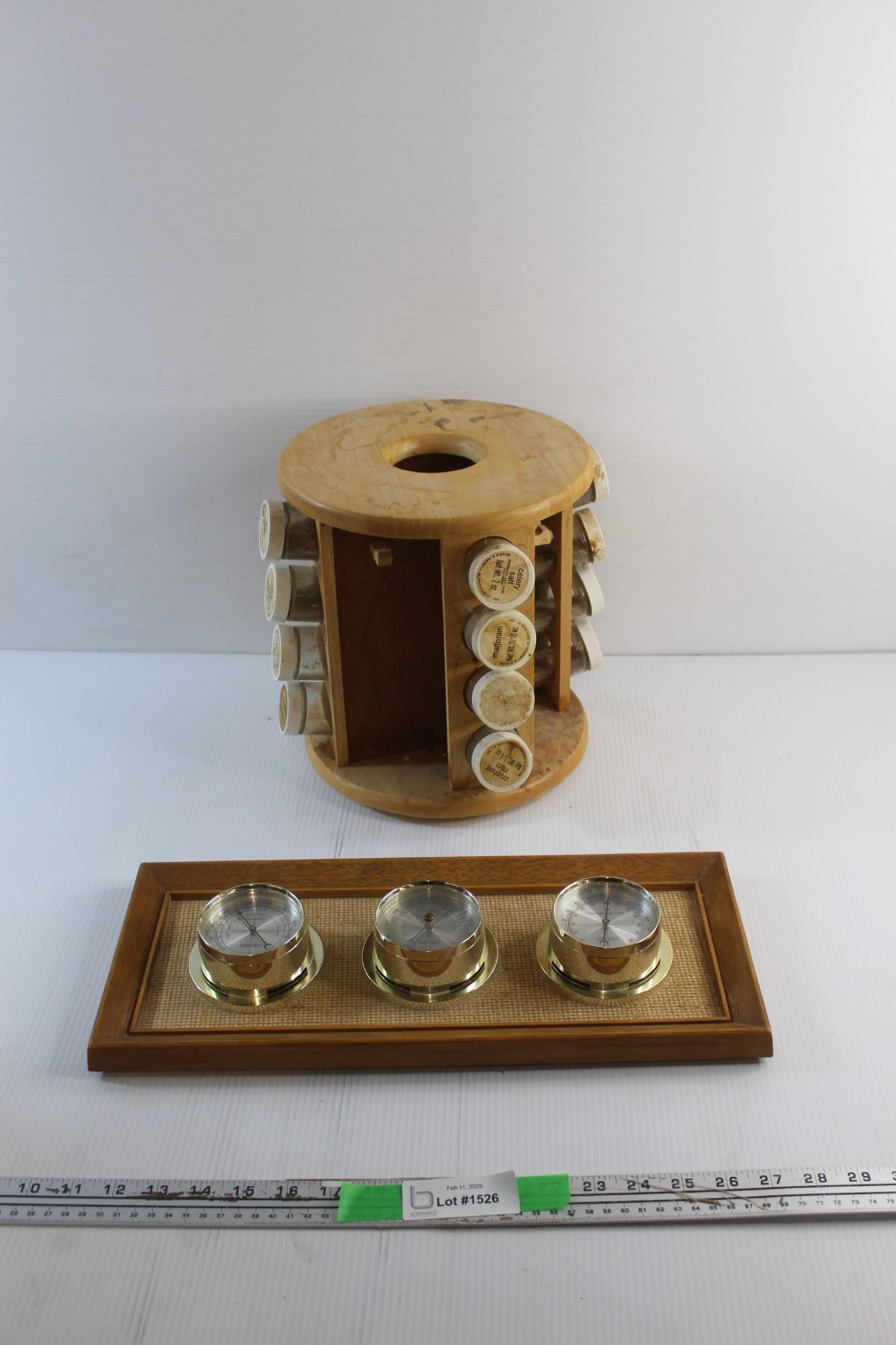 Wooden Spice Rack and 3-Piece Pressure Gauge Thermometer Barometer with Wooden Frame Base