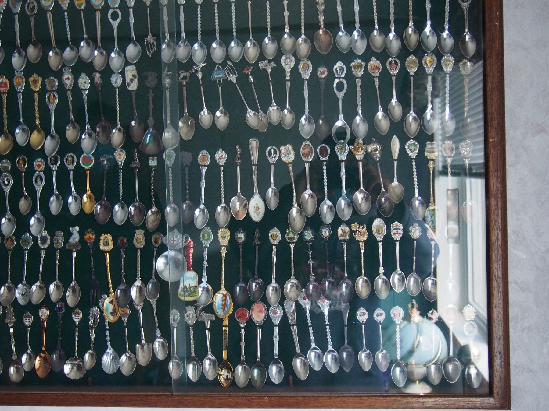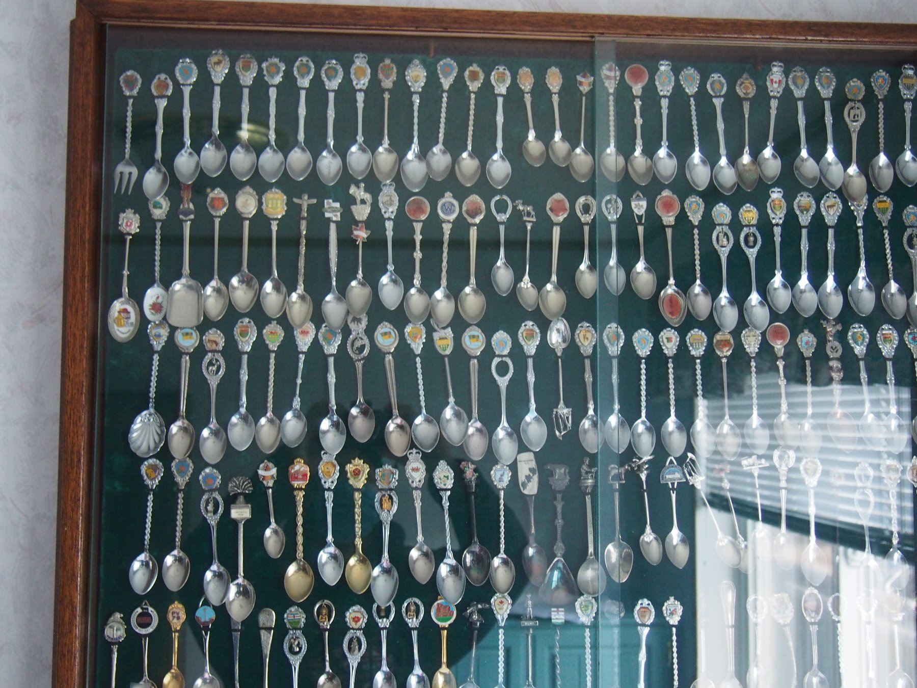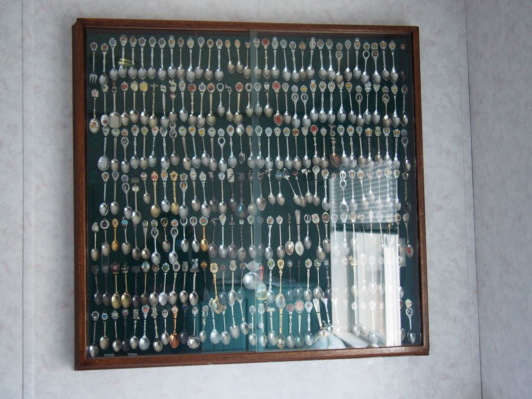 Wooden Spoon Rack with Sliding Glass Doors- Contains Approx 235 Spoons