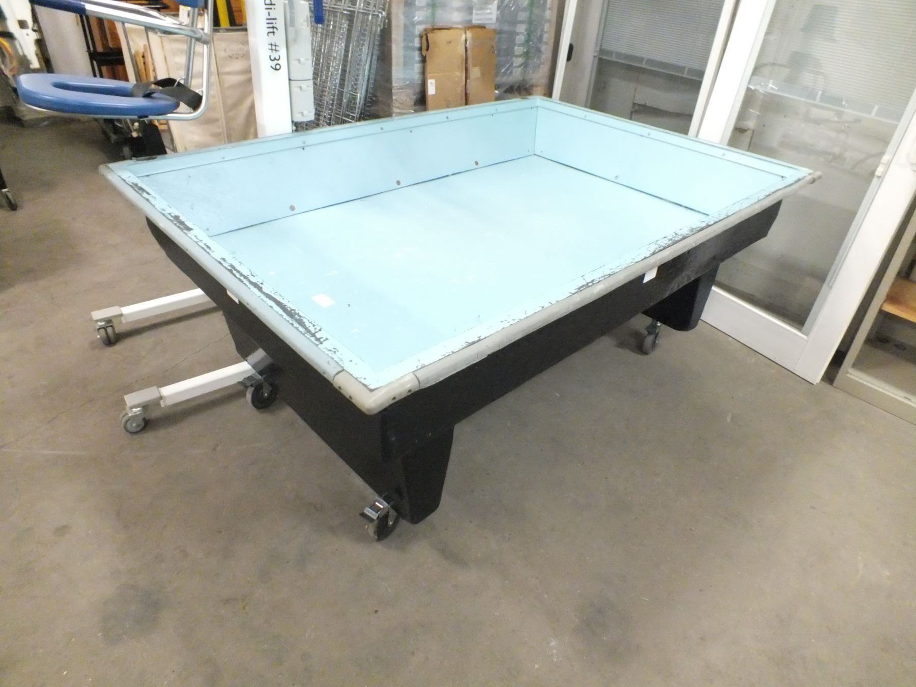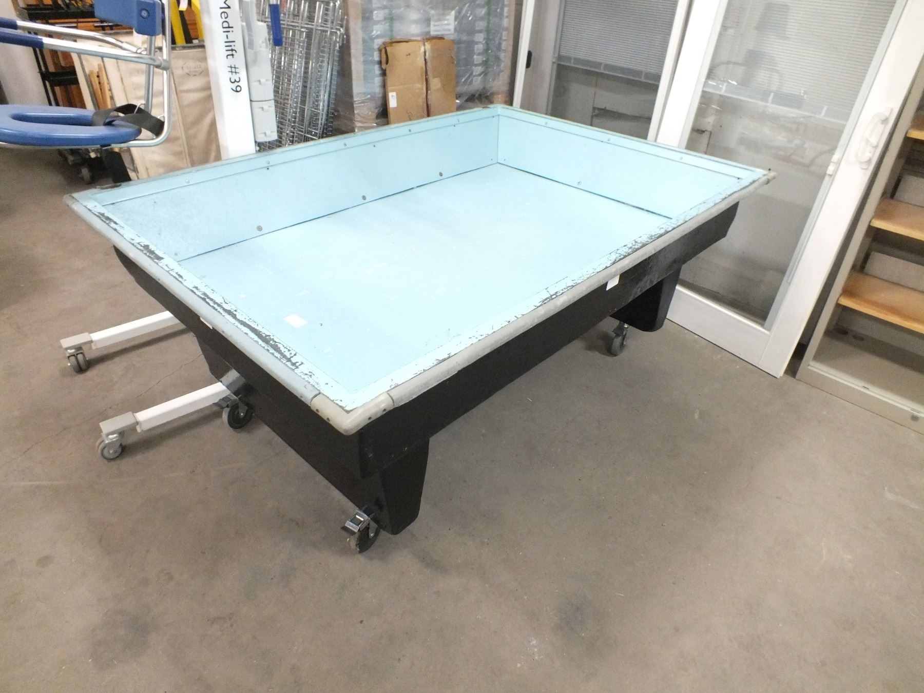 Wooden Table On Wheels, 80"l 56"w 33"h, this thing would make a good planter, or use for a small garden...used