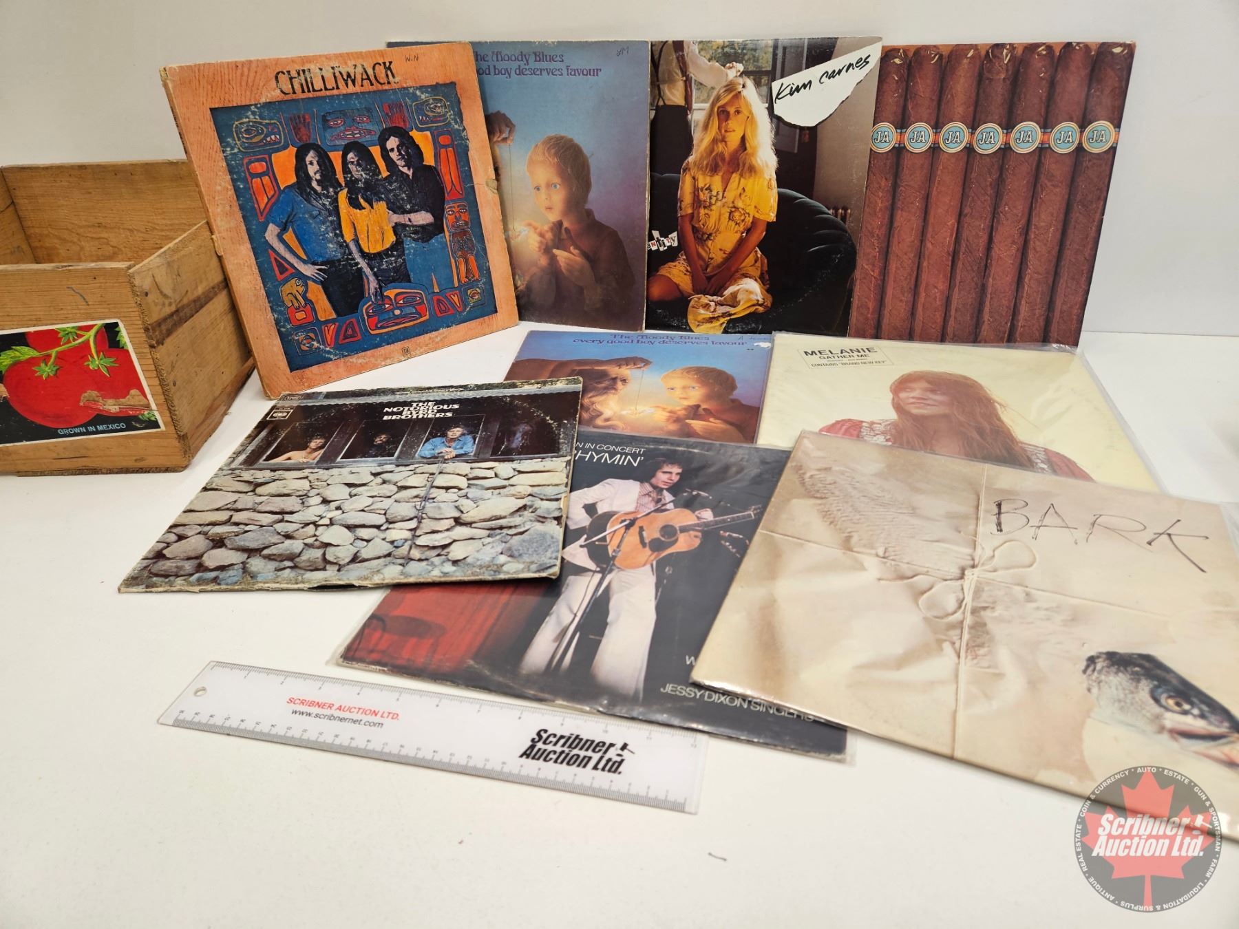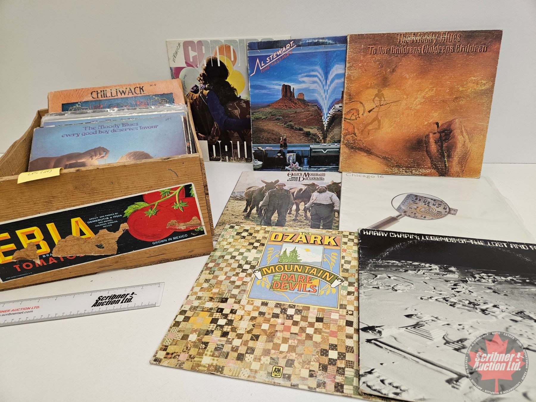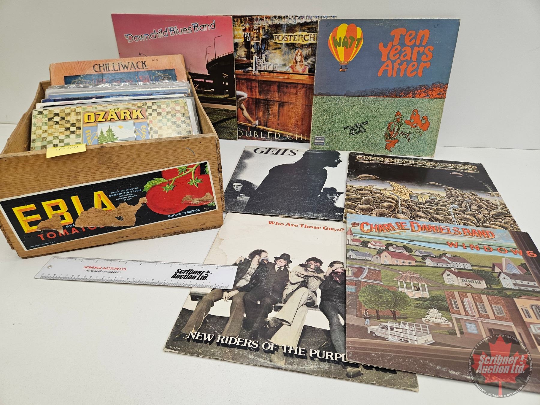 Wooden Tomato Crate w/Collection of LP's (24) including Charlie Daniels Band; Geils; Ozark Mountain Daredevils; Moody Blues; Chilliwack; etc