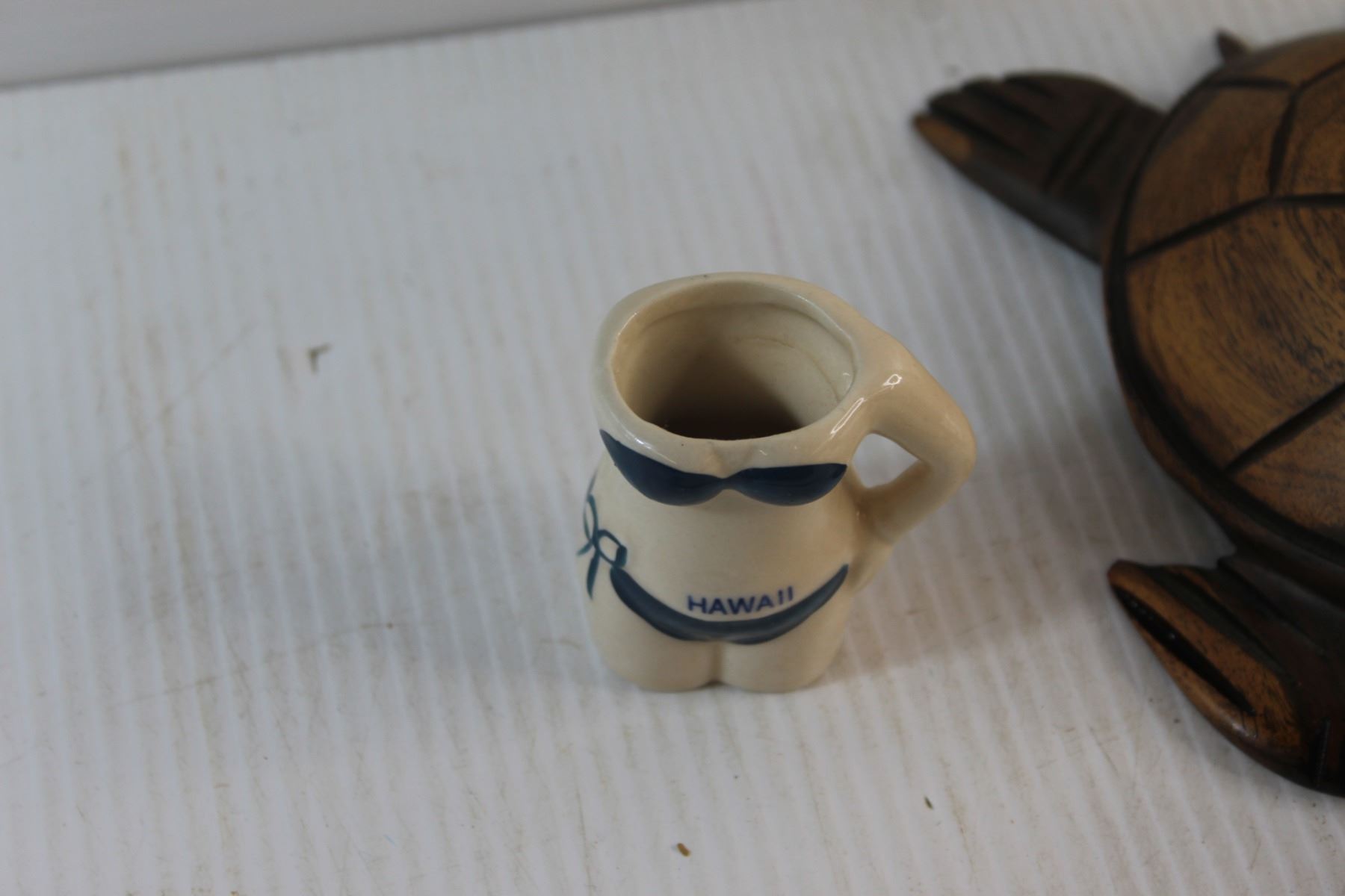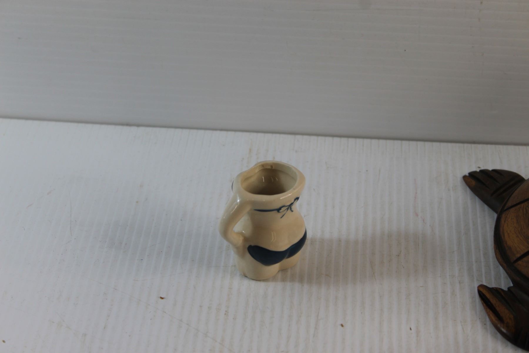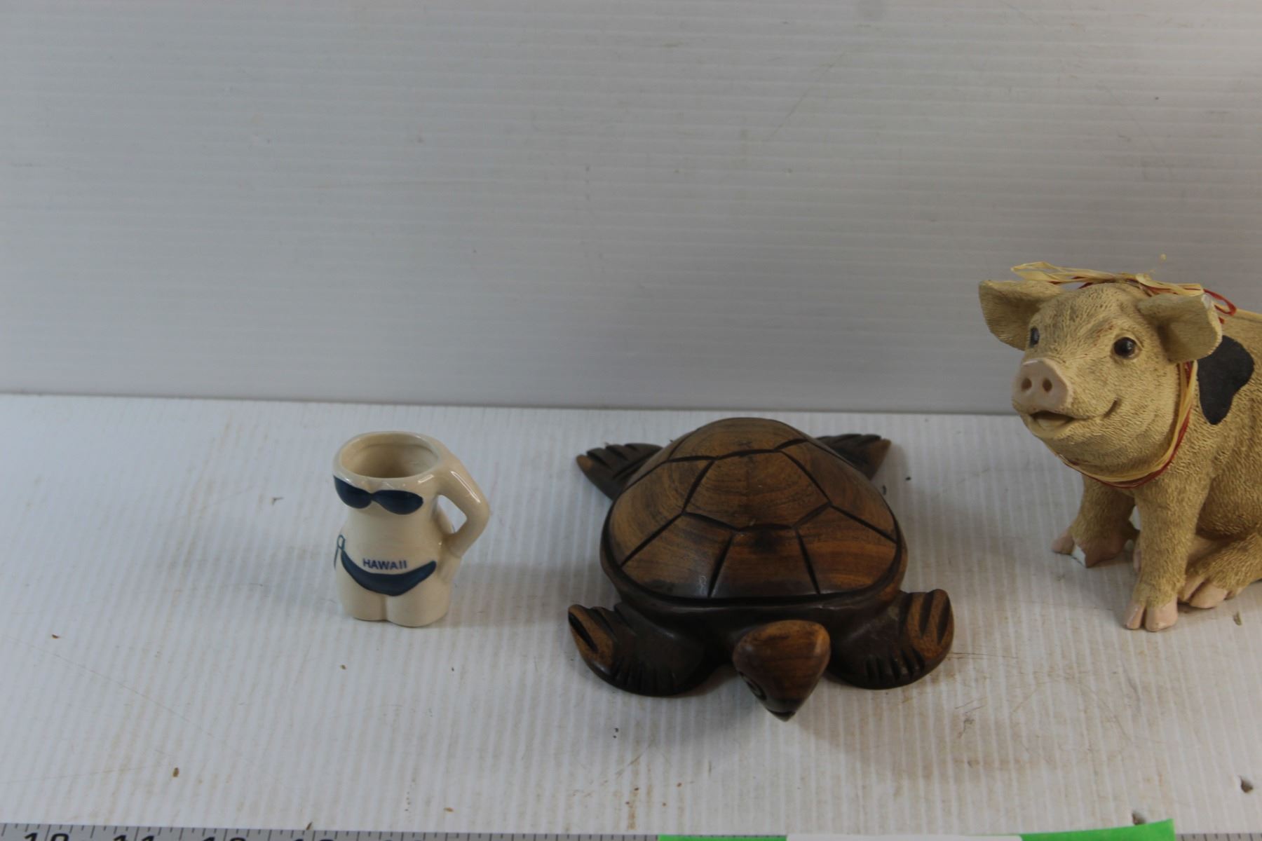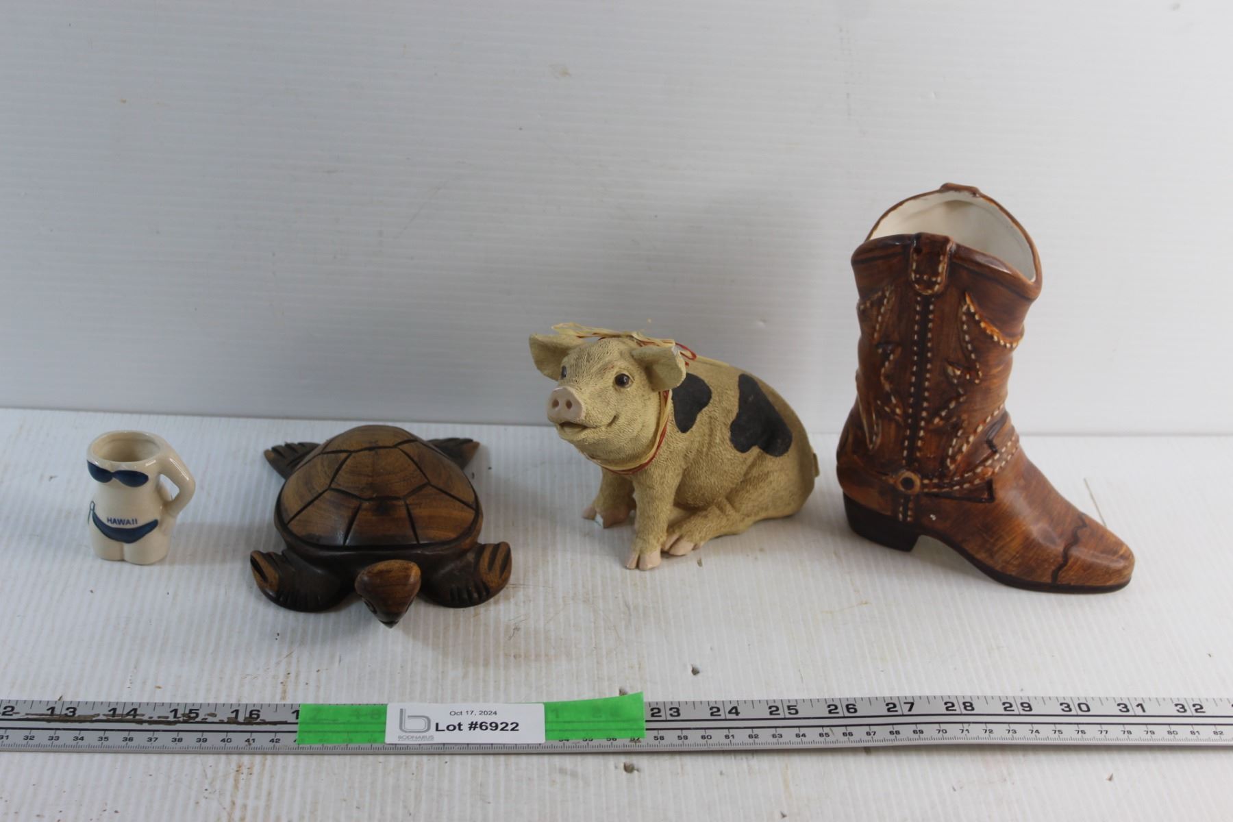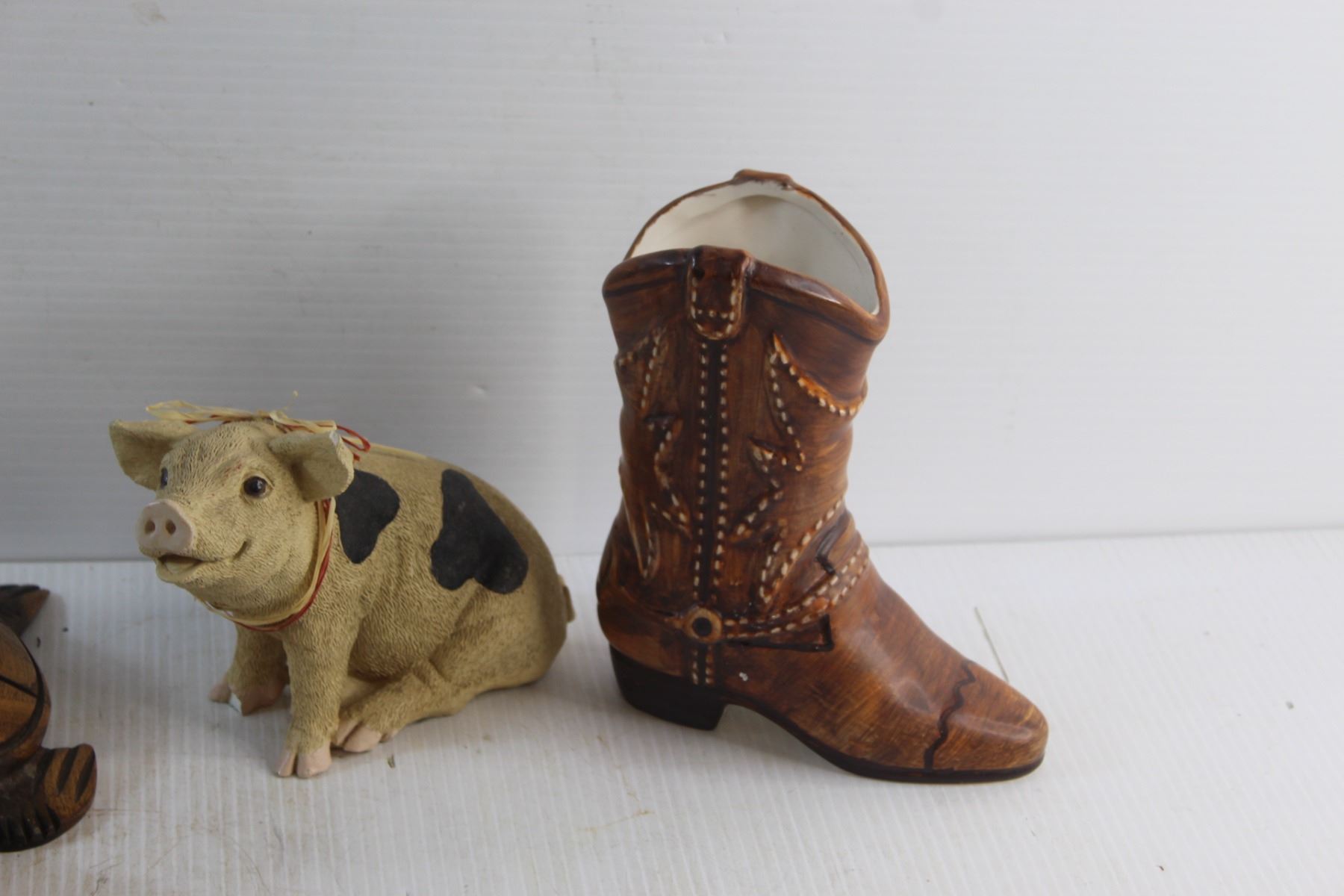 Wooden Turtle, Ceramic Pig, Ceramic Boot Decor and Toothpick Holder - Chipped
