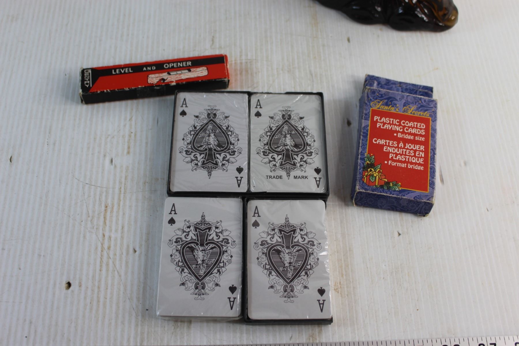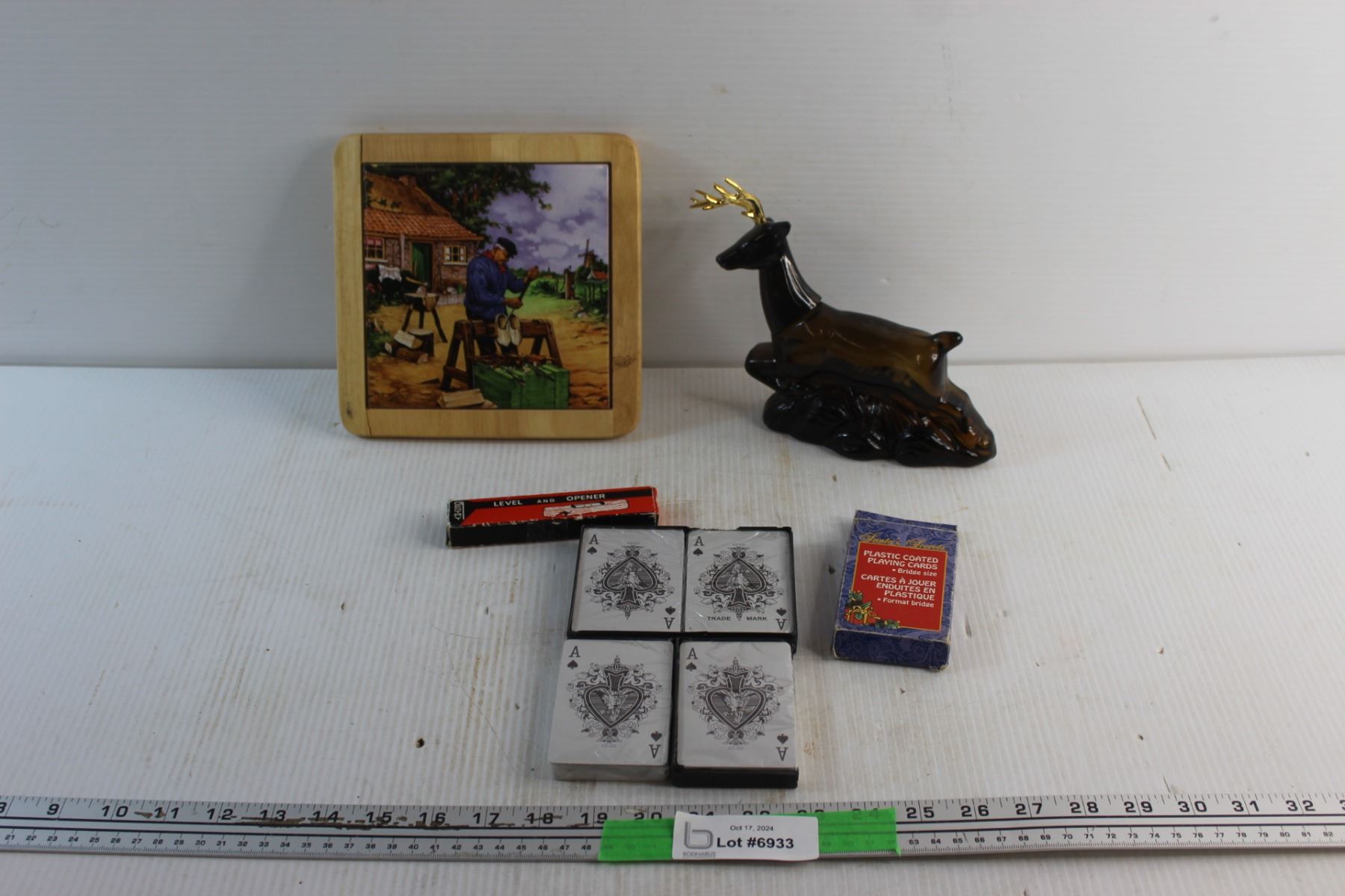 Wooden Wall Decor, Playing Cards, Level & Bottle Opener and Avon Ten Point Buck After Shave