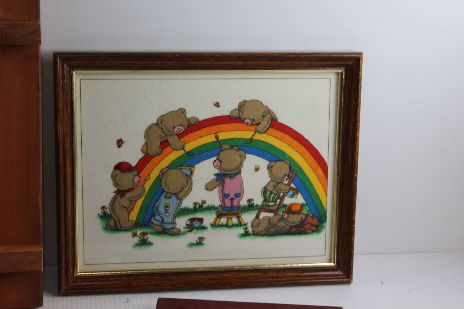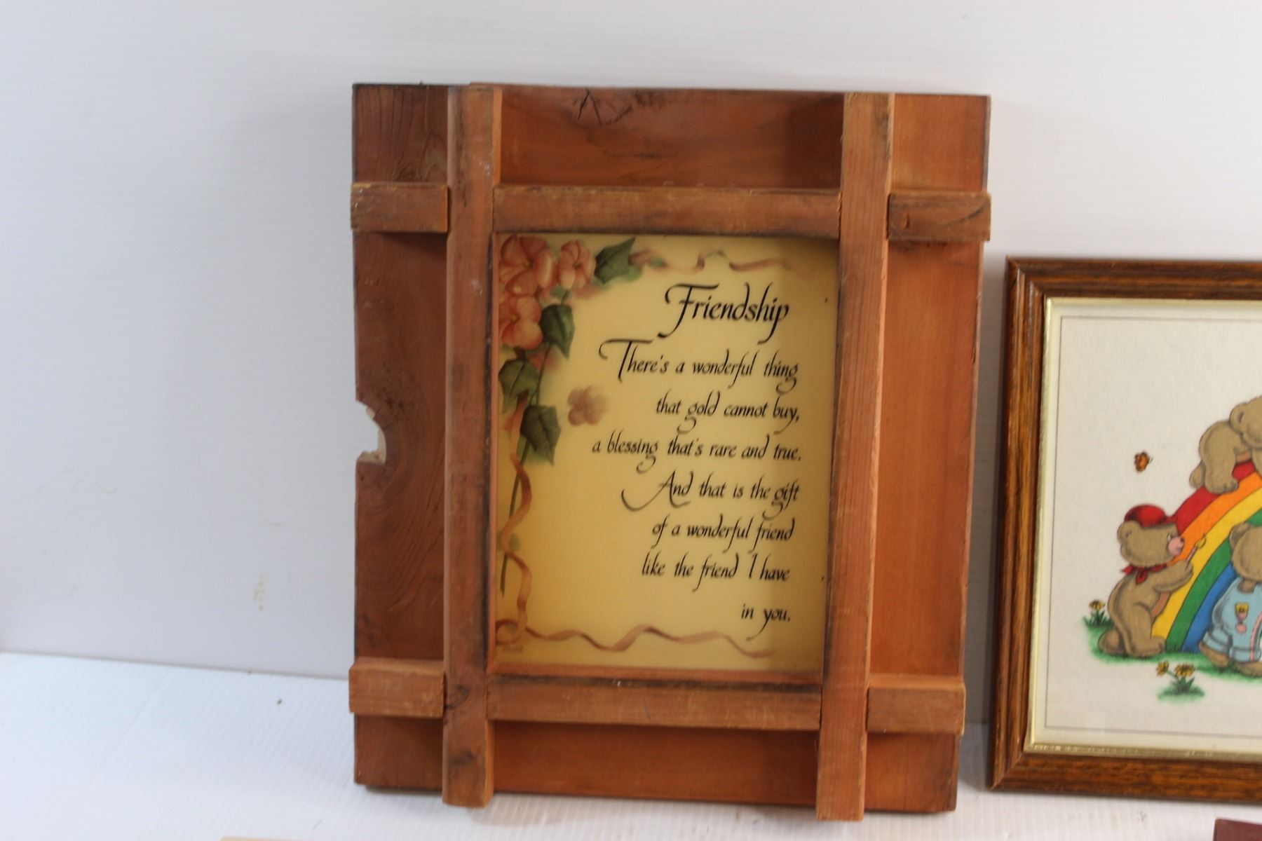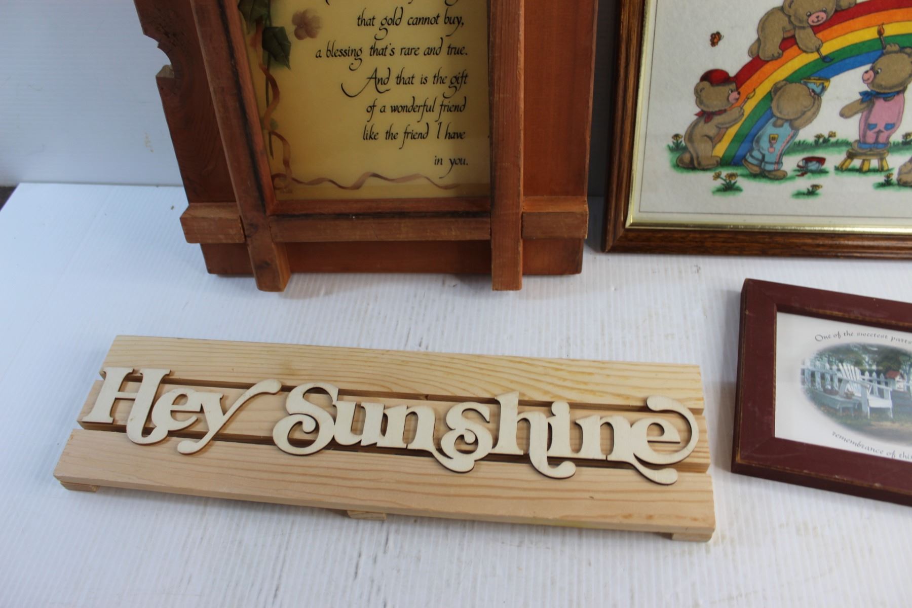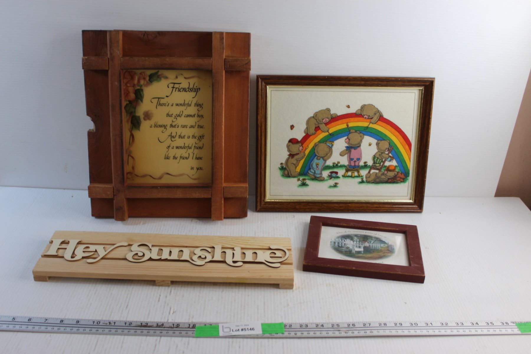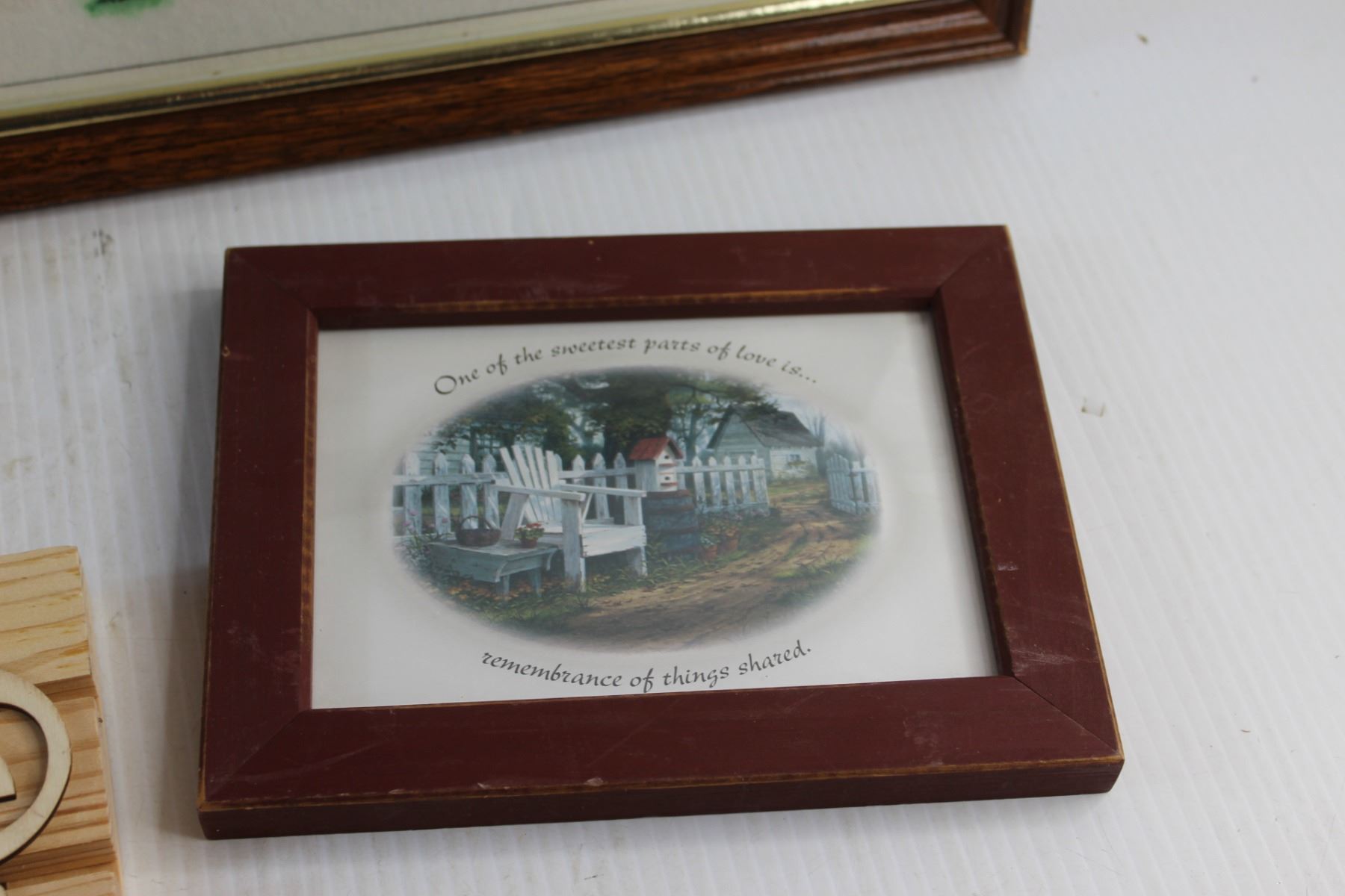 Wooden Wall Decor and (2) Framed Modern Art Prints 15'' x 12''