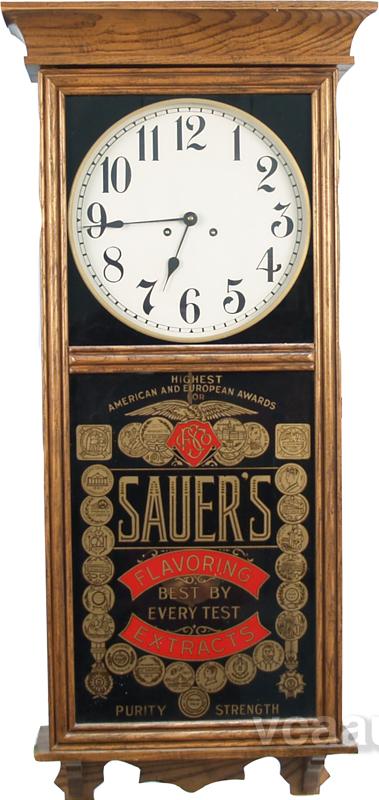 Wooden Wall Mount "Sauer's Flavoring Extracts" Clock (reproduction) - 16" x 40"