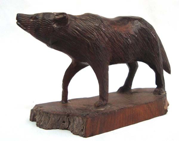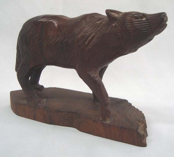 Wooden Wolf Carving. 4.75'' H x 7.5''L. Carved on a nice piece of natural wood.