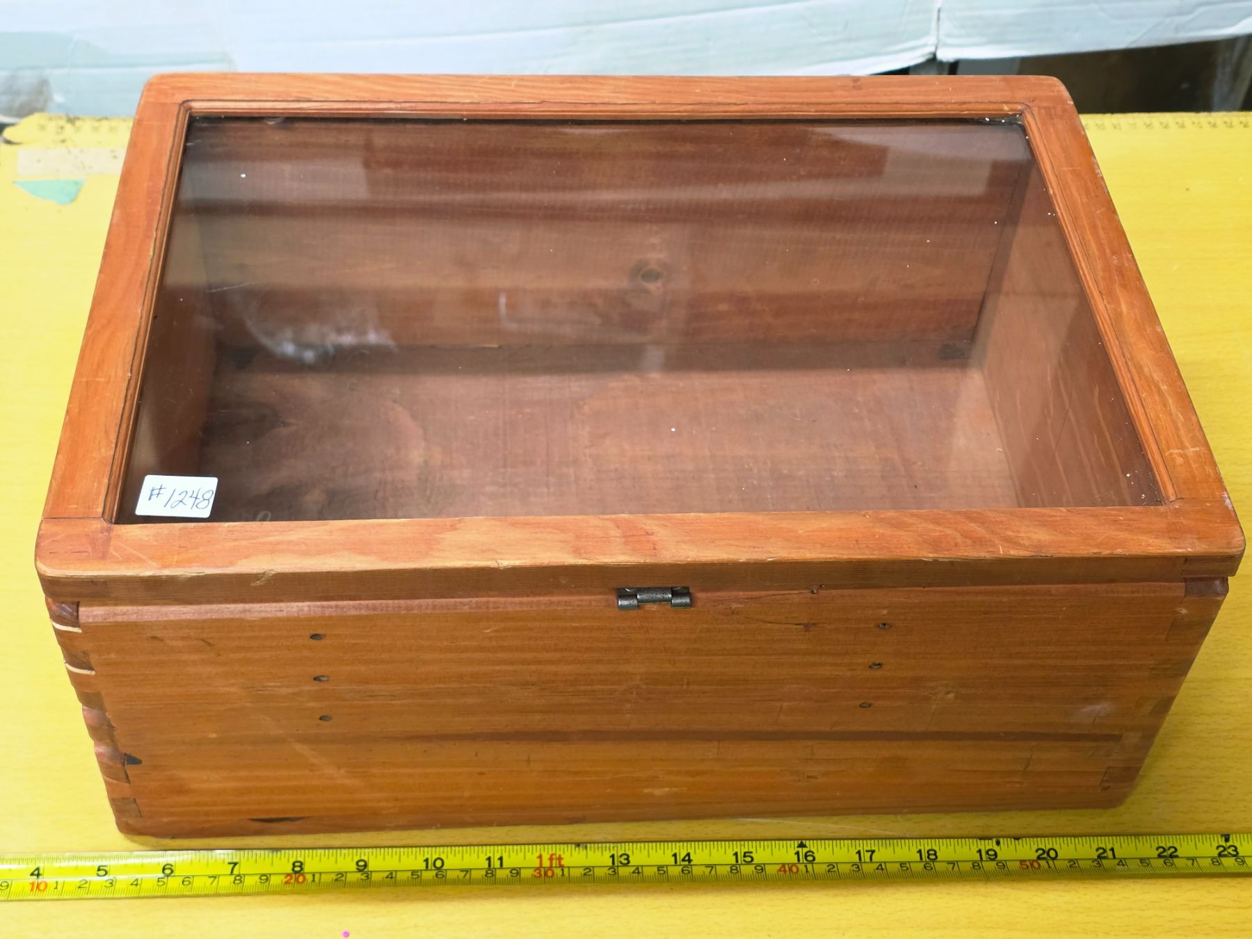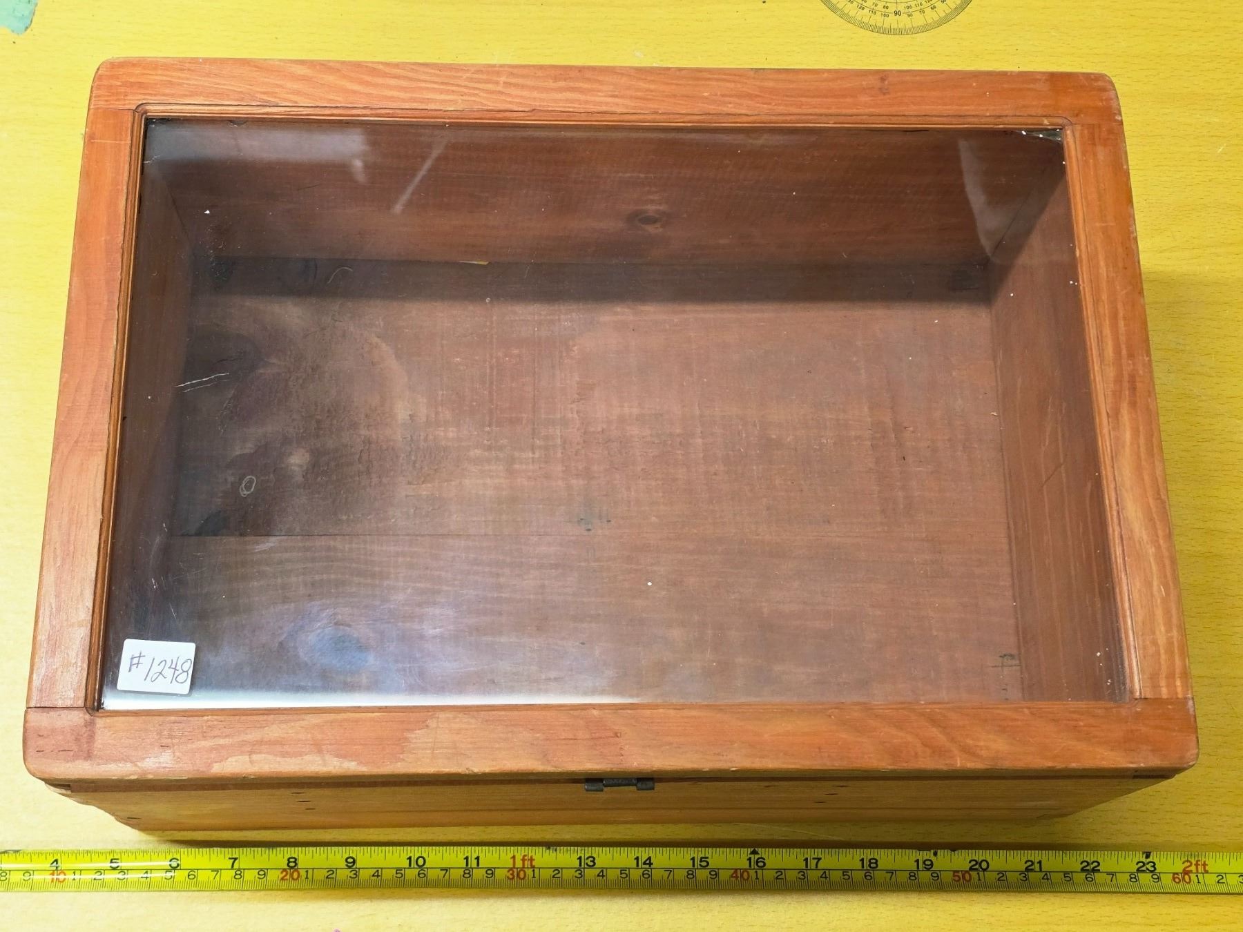 Wooden box with glass lid- 16.5" by 11" by 7"H