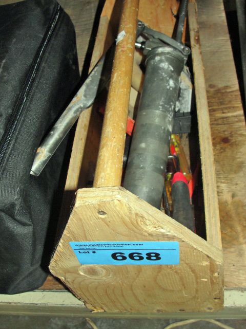 Wooden carpenters toolbox and contents