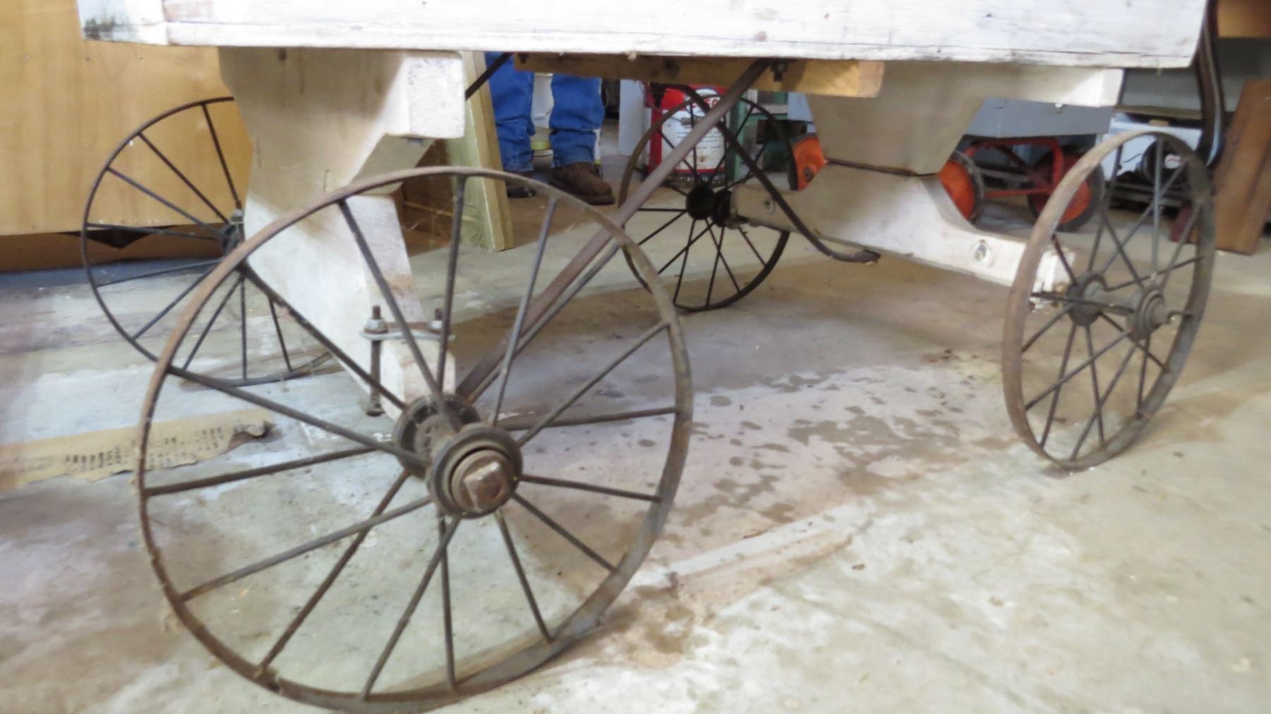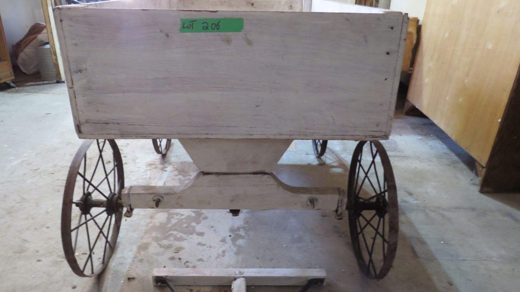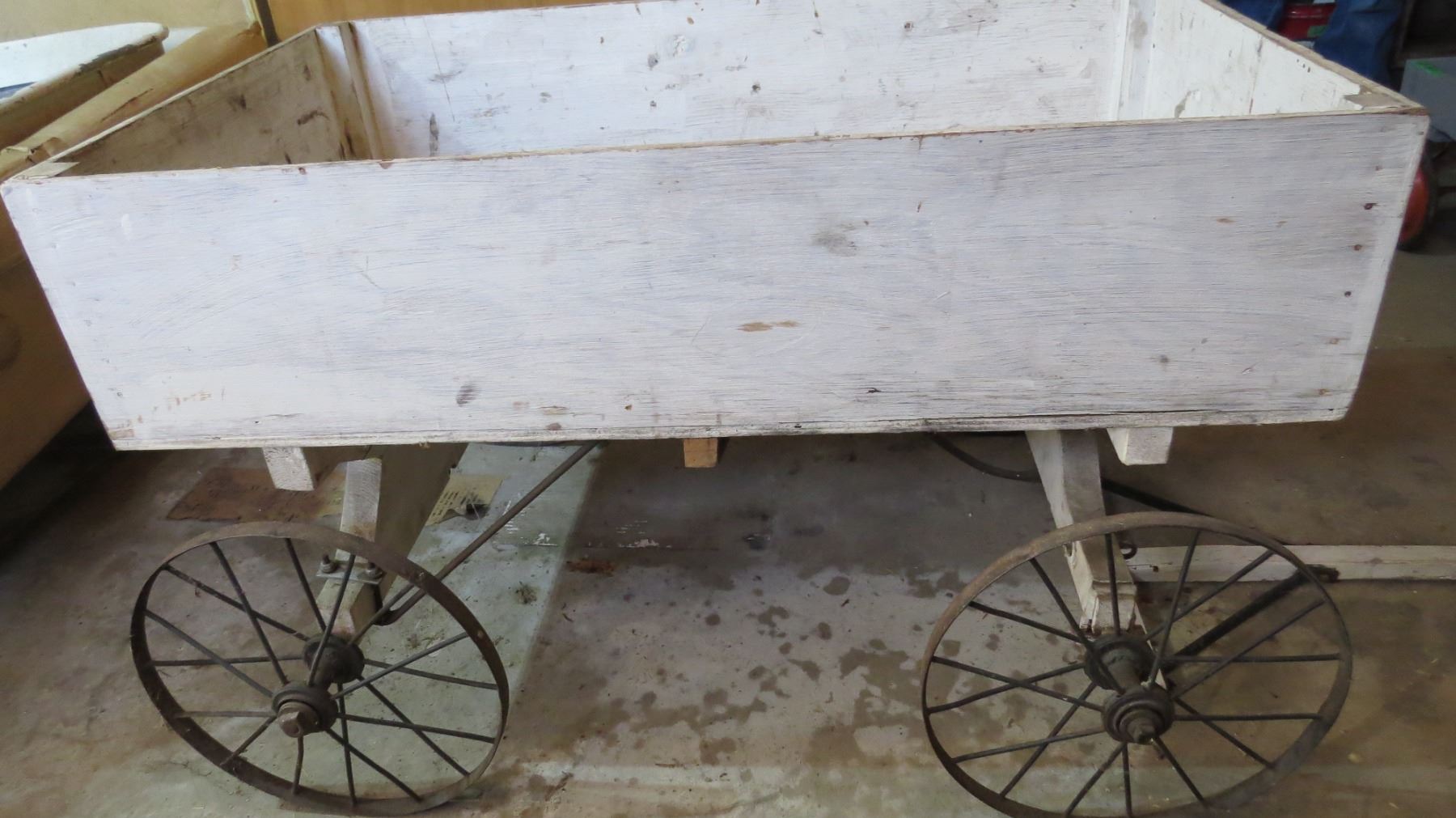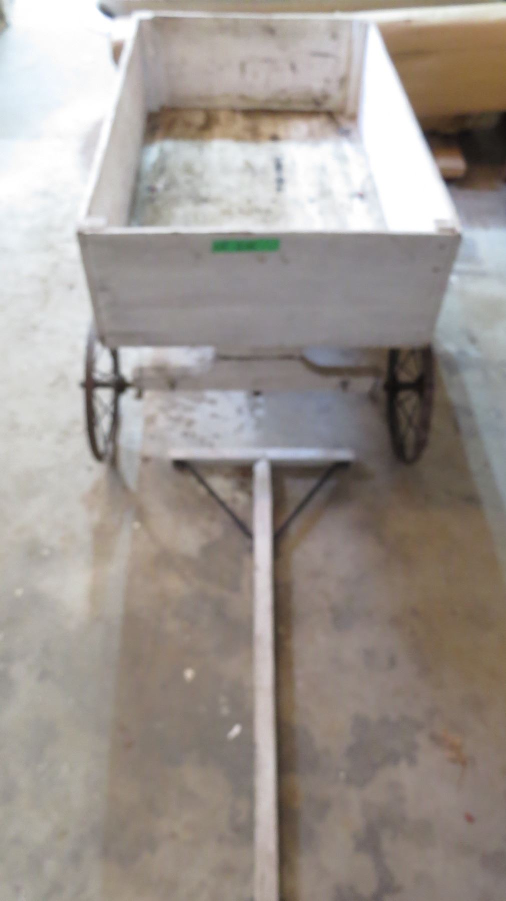 Wooden mail wagon on steel wheels - 40x24x26 with 39" handle (does have rod to attach handle to)