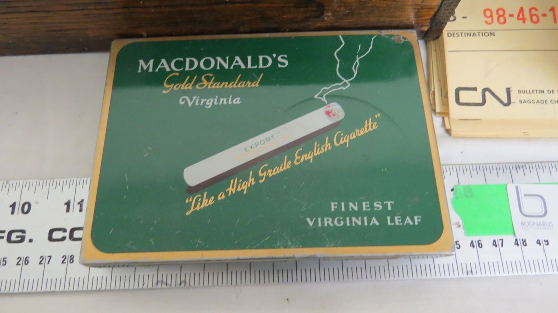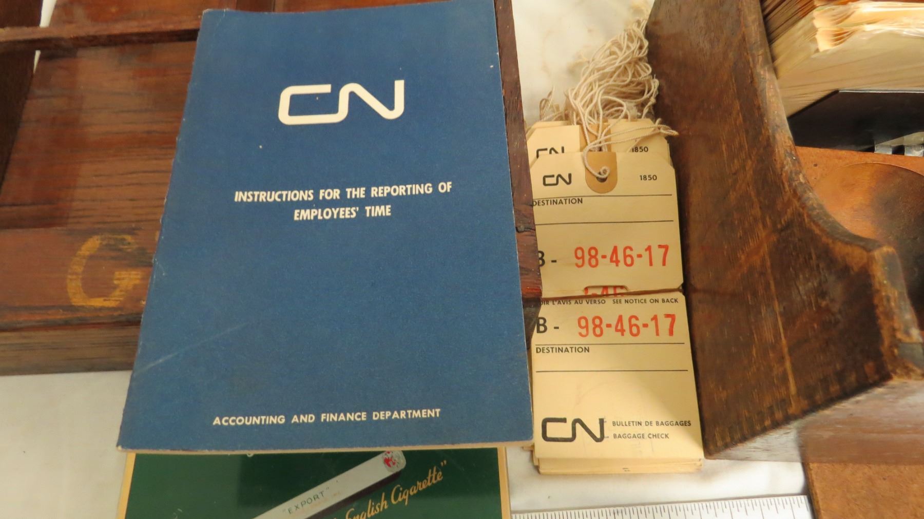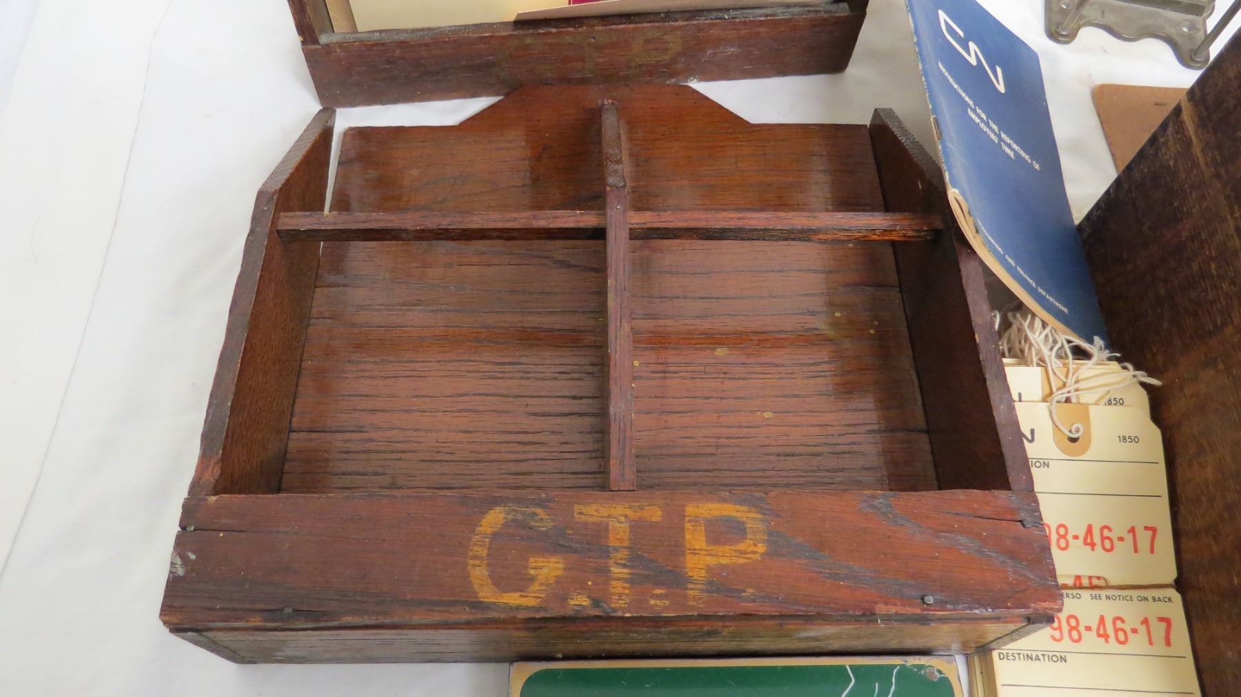 Wooden related items, tobacco tin plus misc