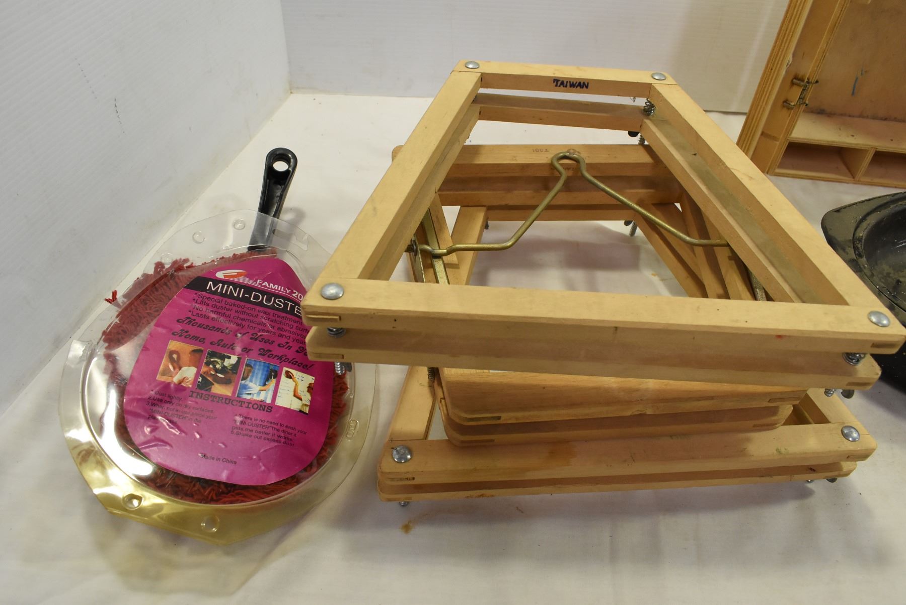 Wooden tennis racket holders,, Duster, Knife, Roaster, mug tree & Wire Rack