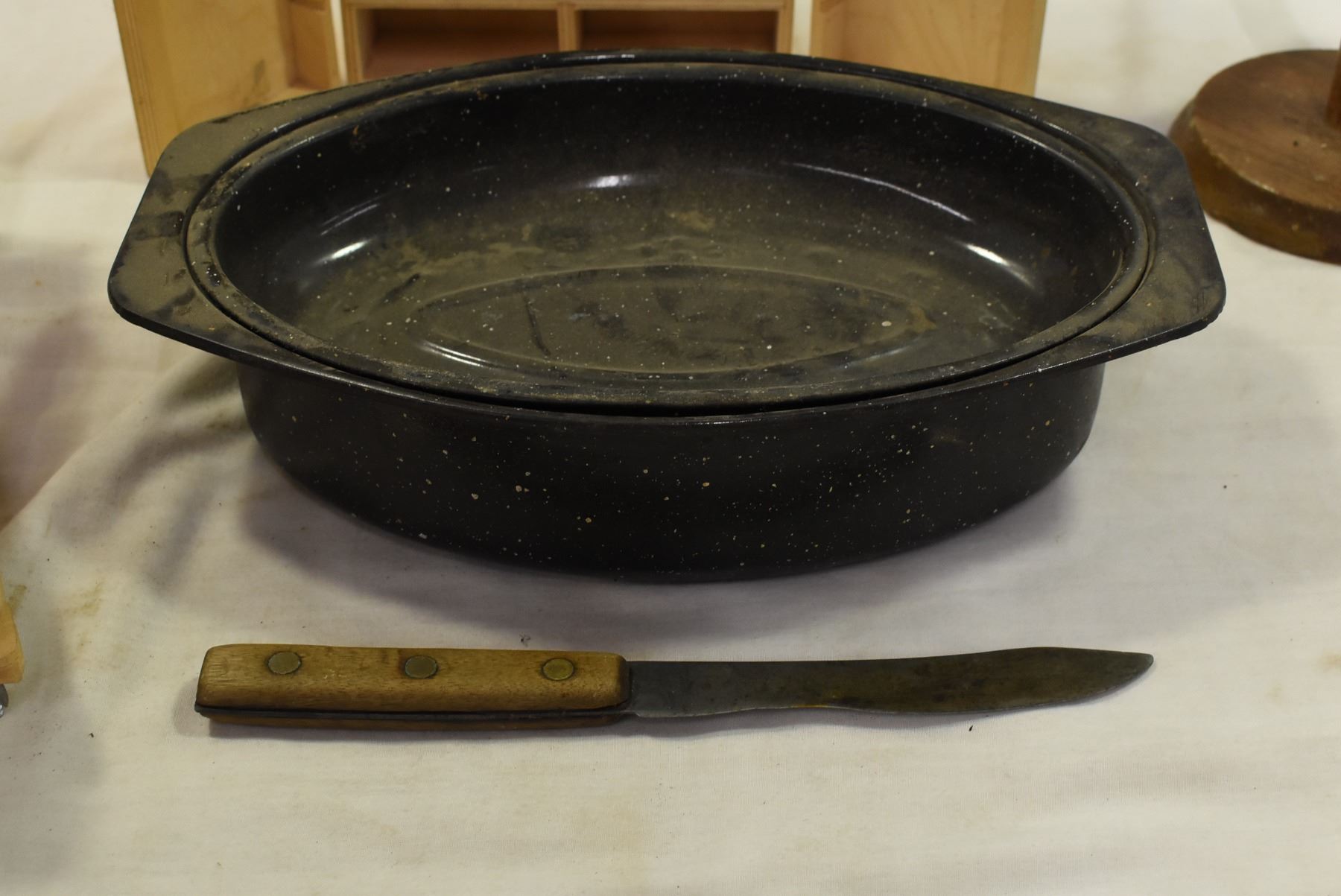 Wooden tennis racket holders, Duster, Knife, Roaster, mug tree & Wire Rack