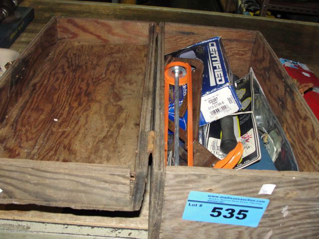 Wooden toolbox and contents