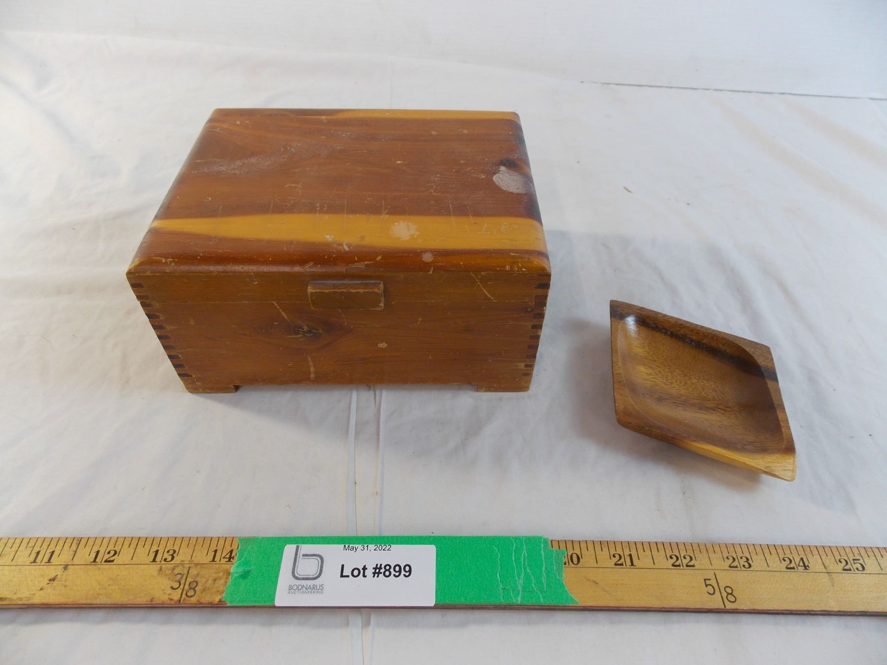 Wooden trinket box + small dish