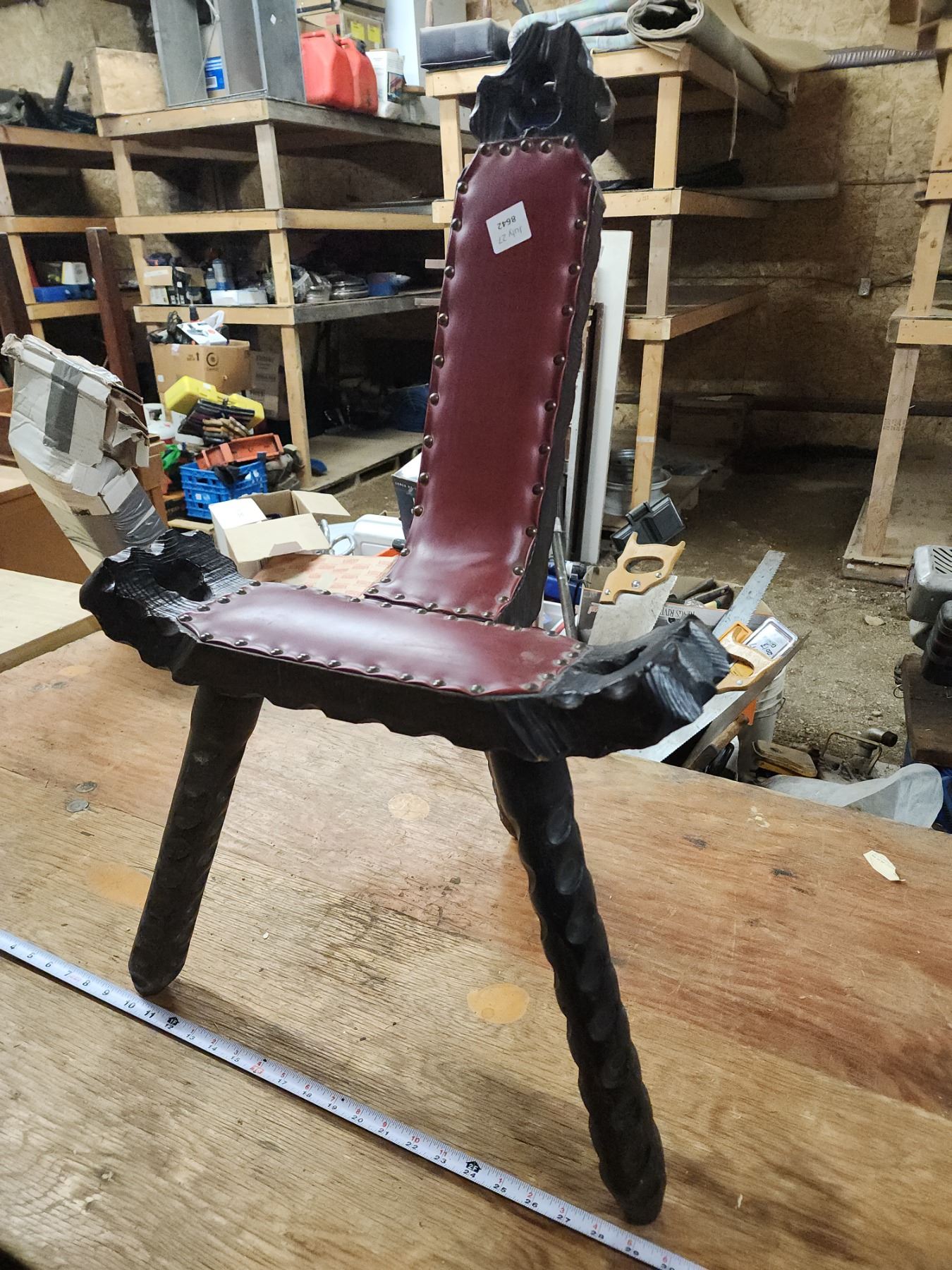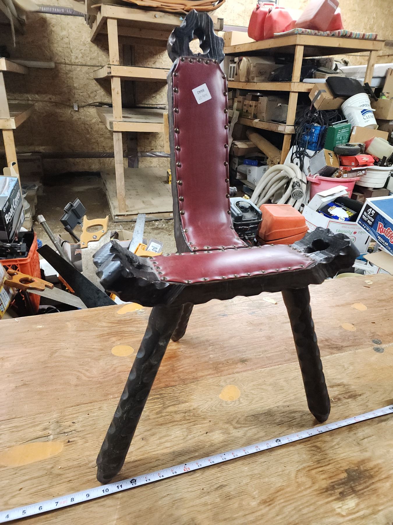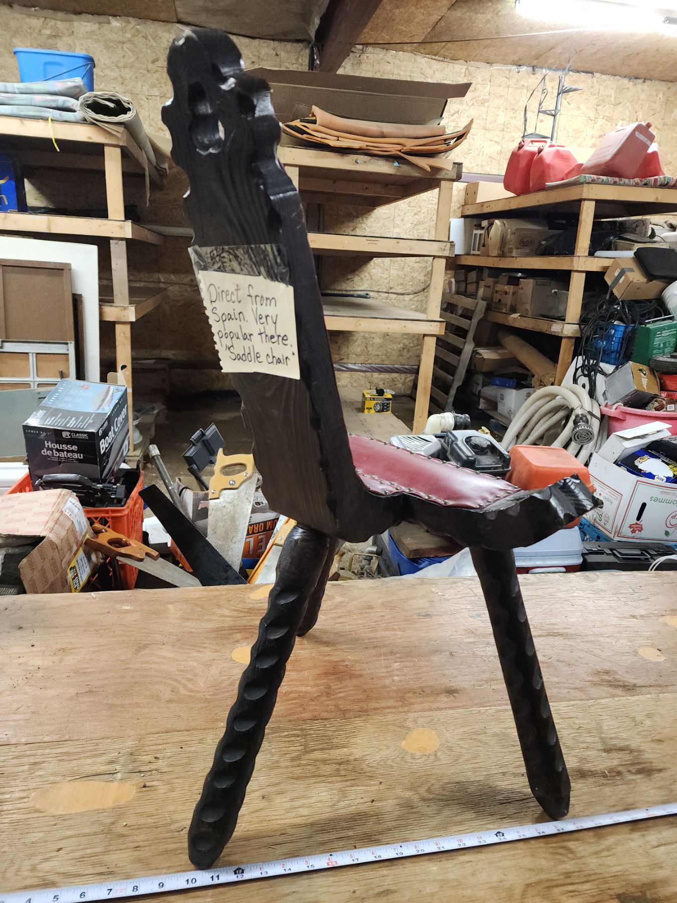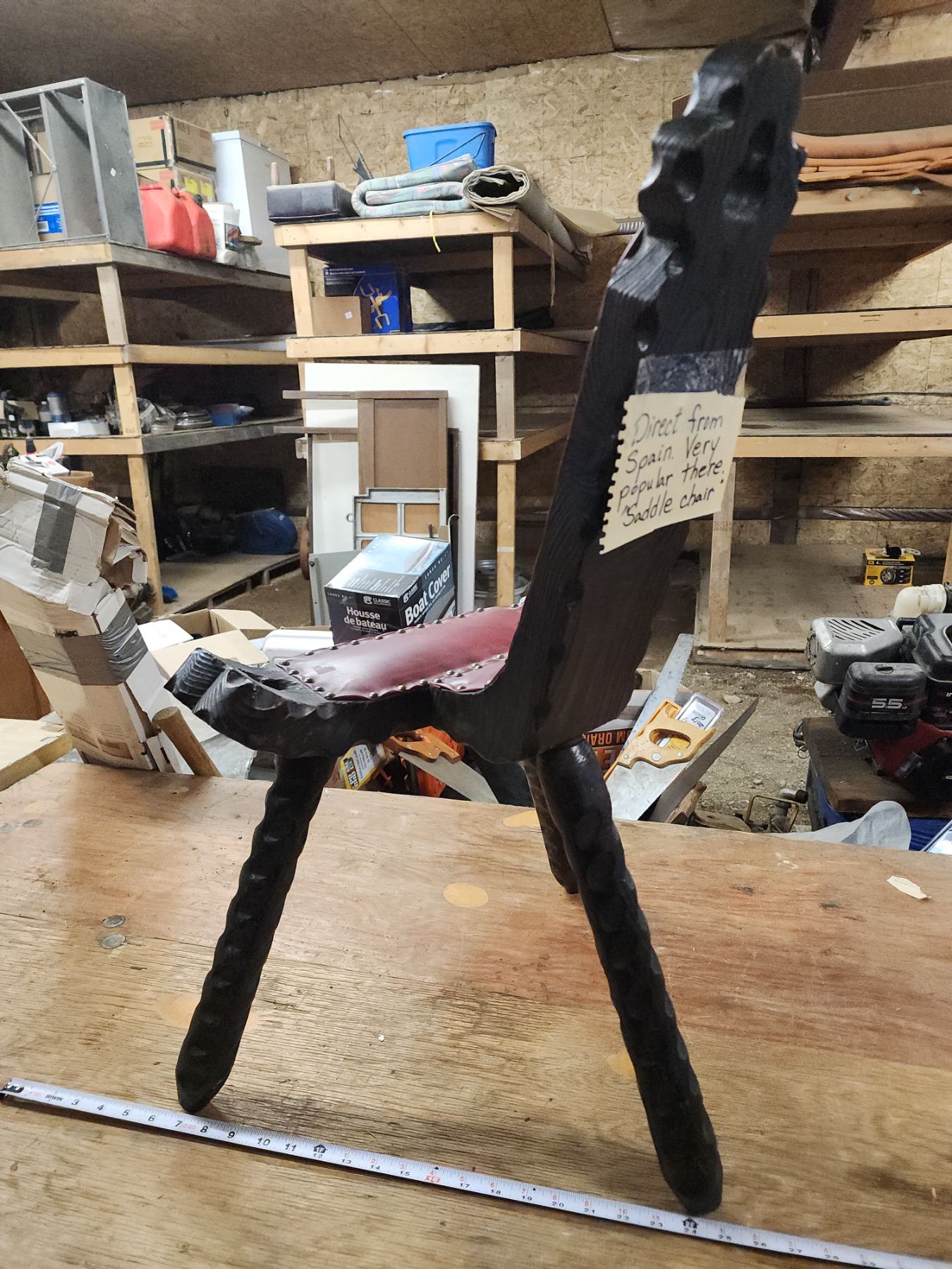 Wooden unique saddle chair, from Spain - 31"H x 22"W x 16"D