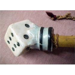 Wooden walking stick, with porcelain die handle, measures 37" high, 19th C