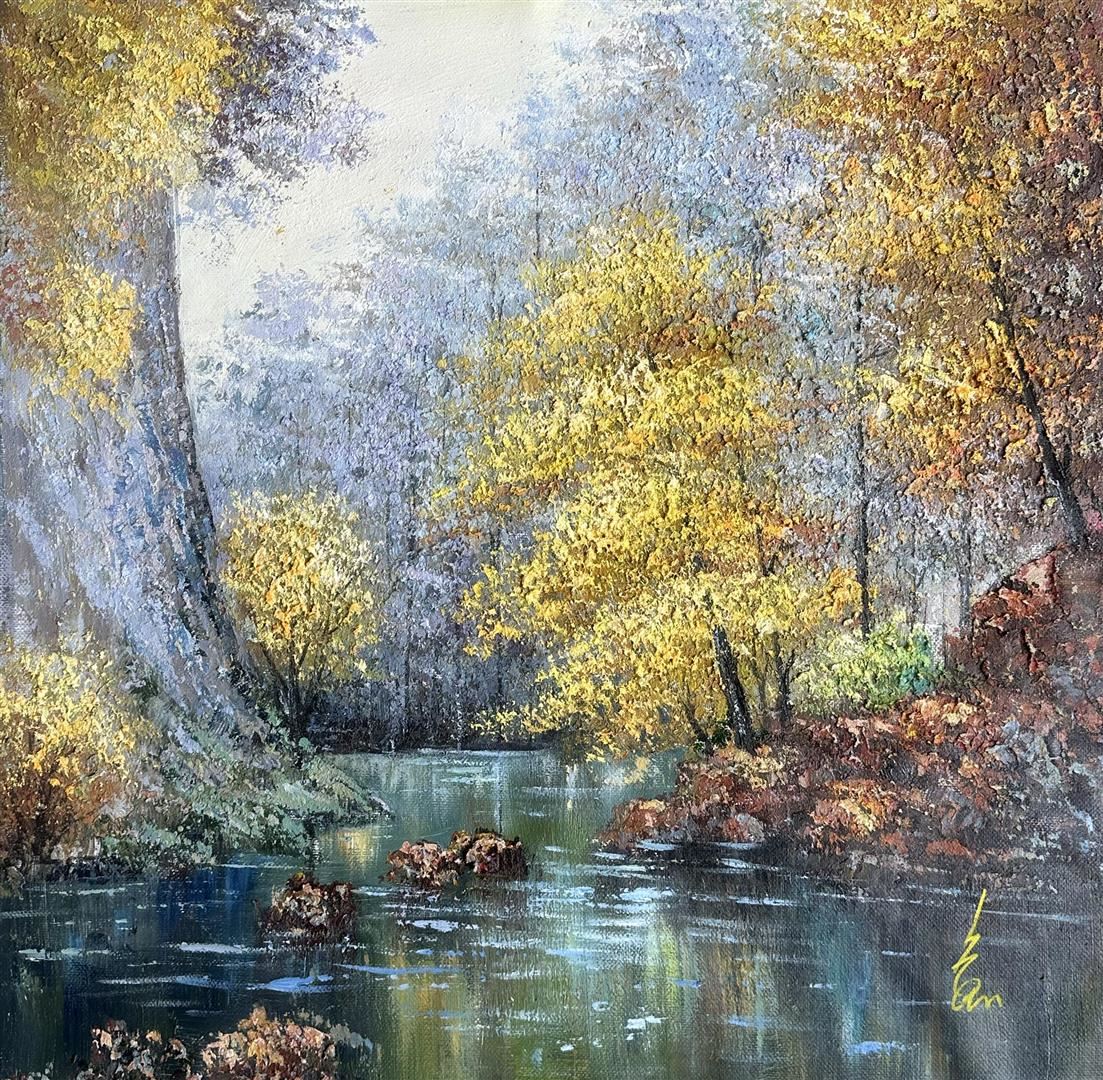 A stunning landscape in the classic impressionist style, with heavy impasto, by world renowned artist Inam. 36"x36" original on canvas, with COA