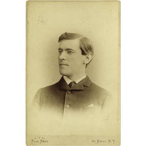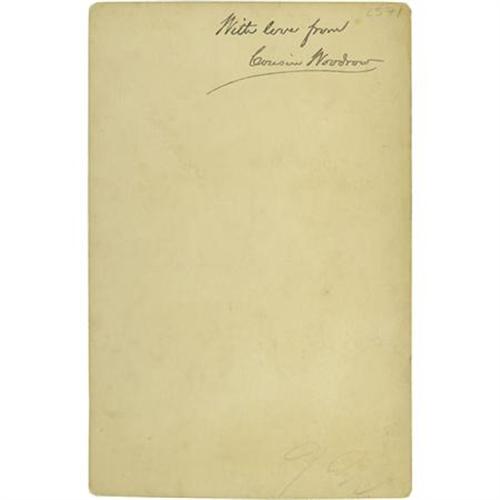 <B>Woodrow Wilson Signed Cabinet Card,</B></I> ca. 1880s, imprinted by Pach Bros., New York City on lower margin. Inscribed "<I>With love from Cousin Woodrow</B></I>" on the verso. Toned with light soiling not affecting image. Fine condition. This likeness of a crisp, young Wilson dates to a period of transition in the future president's life. In 1883, he left a fledgling law practice in Atlanta in order to pursue an academic career and had joined Princeton's faculty by 1890. Wilson's portrait sitting with the Pack Brothers would have occurred between 1885 and 1890 given the address on the imprint. The brothers - Augustus, Oscar, and Godfrey - operated a successful studio well into the 20th century and were experienced as celebrity portrait photographers. Wilson was a return customer as there exists a well-documented Pach portrait of him taken in 1912.<BR><BR><b>Shipping:</b> Miscellaneous Collectibles, Smal (<a target="_blank" href="http://www.heritageauctions.com/common/shipping.php">view shipping information</a>)