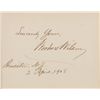 Ink signature, “Sincerely Yours, Woodrow Wilson, Princeton, N. J., 2 April, 1908,” on an off-white 4.5 x 3.5 card. Tastefully double-matted and framed with a portrait of Wilson to an overall size of 13.5 x 8.5. In fine condition, with two light spots of foxing. From the collection of noted publisher and founder of Lord John Press, Herb Yellin.