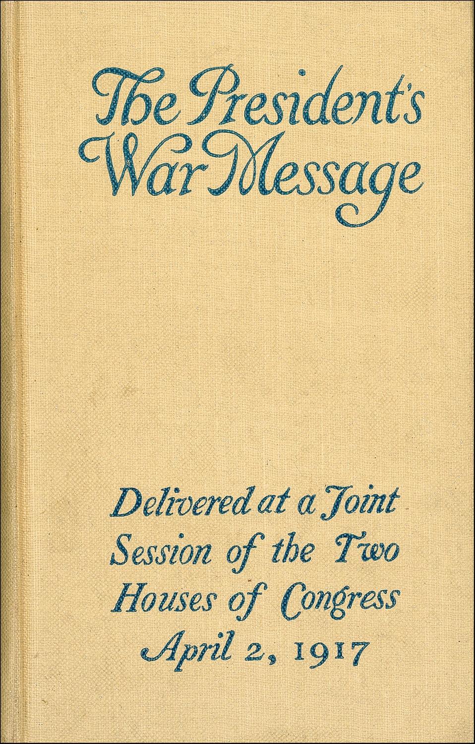 Signed book: The President’s War Message Delivered at a Joint Session of the Two Houses of Congress, April 2, 1917. NY: Edward J. Clode, 1917. Hardcover, 4 x 6, 47 pages. Signed in ink on the first free end page, “Woodrow Wilson.” Book is housed in a custom clamshell box and slipcase. In fine condition, with some light soiling and fraying to covers. Slipcase shows scattered light wear and rubbing, and light surface wear and spots to spine of slipcase. Wilson’s speech forcefully outlined his reasons for supporting America’s entry into World War I; four days later, on April 6, the United States declared war on Germany. An unusual item of high historical significance!