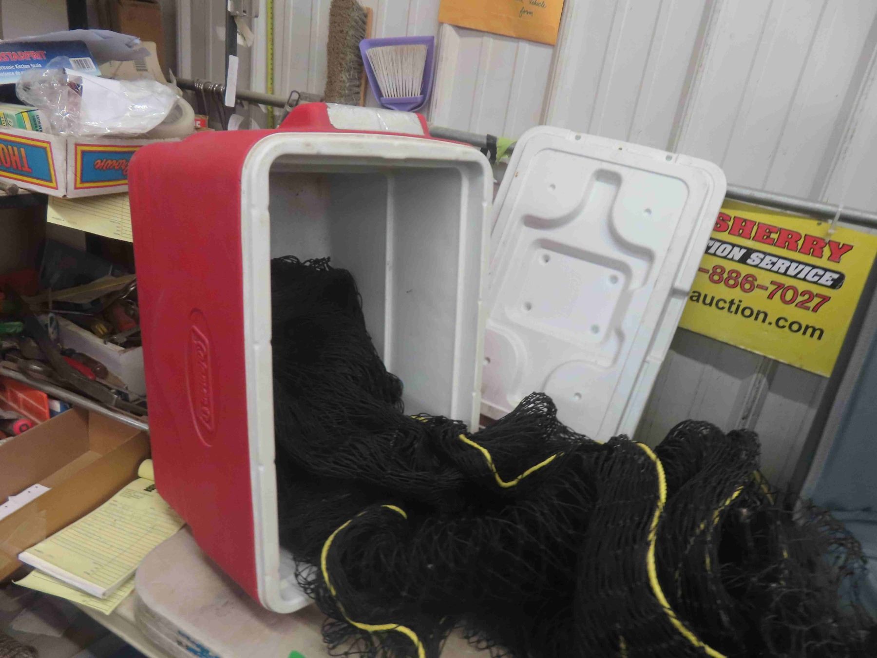 Woods Folding Cot (Appears New), Coleman Cooler with Fish Netting