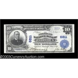 <TABLE cellSpacing=0 cellPadding=0 width="100%" bgColor=#000000 border=0><TBODY> <TR><TD width="100%"><TABLE cellSpacing=1 cellPadding=3 width="100%" border=0><TBODY><TR><TD width="100%" bgColor=#79735c><FONT face=arial color=#ffffff size=3><B>Description</B> </FONT></TD></TR><TR><TD width="100%" bgColor=#ffffff><FONT face=arial size=2><B>Woodstock, IL</B></I> - $10 1902 Plain Back Fr. 624 <B>The American NB</B></I> Ch. # 6811<BR>A very scarce northern Illinois note in unheard of condition. There is some handling, but the vibrant colors, bright white paper, and crackling freshness of this note easily make the assigned grade. Pen signed <B>Choice Crisp Uncirculated,</B></I> a lovely example. (1,250-1,750 ) </FONT></TD></TR></TBODY></TABLE></TD></TR></TBODY></TABLE><BR><TABLE cellSpacing=0 cellPadding=0 width="100%" bgColor=#000000 border=0><TBODY><TR> Important notice: Heritage usually auctions material at the rate of 200-250 lots per hour. On some occasions eBay Live bid software or the Internet may not be able to keep up with the pace of the auction. We recommend placing a realistic absentee bid now as insurance to avoid disappointment. Occasionally the auctioneer may eliminate or reject an eBay Live bid, and the auctioneer may also reopen a lot after the close of the eBay live bidding (usually because we missed an audience bid), and may reject your bid even if it shows you as the winning bidder. By bidding via eBay Live, you agree that Heritage may award the lot to another bidder at its sole discretion under the circumstances described above or any other reasonable circumstances. Also please note that all Heritage lots purchased through eBay Live carry a 20% Buyer's Premium. Please make sure you read the Terms and Conditions before you bid.</TR></TBODY></TABLE>
