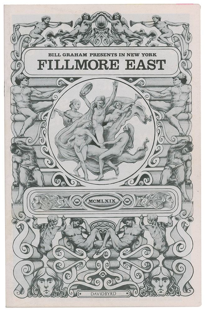 Fillmore East program for a pair of Jefferson Airplane and Joe Cocker concerts on August 8-9, 1969, 22 pages, 5.5 x 8.5, which also features a two-page advertisement and ticket order form for the Woodstock Music & Art Fair set to occur a week later in Wallkill, New York; both Cocker and Jefferson Airplane were featured acts and these Fillmore concerts served as a warm-up for their eventual Woodstock performances. The program also has several advertisements promoting releases by Iron Butterfly, Canned Heat, Procol Harum, and Crosby, Stills, and Nash. In fine condition.