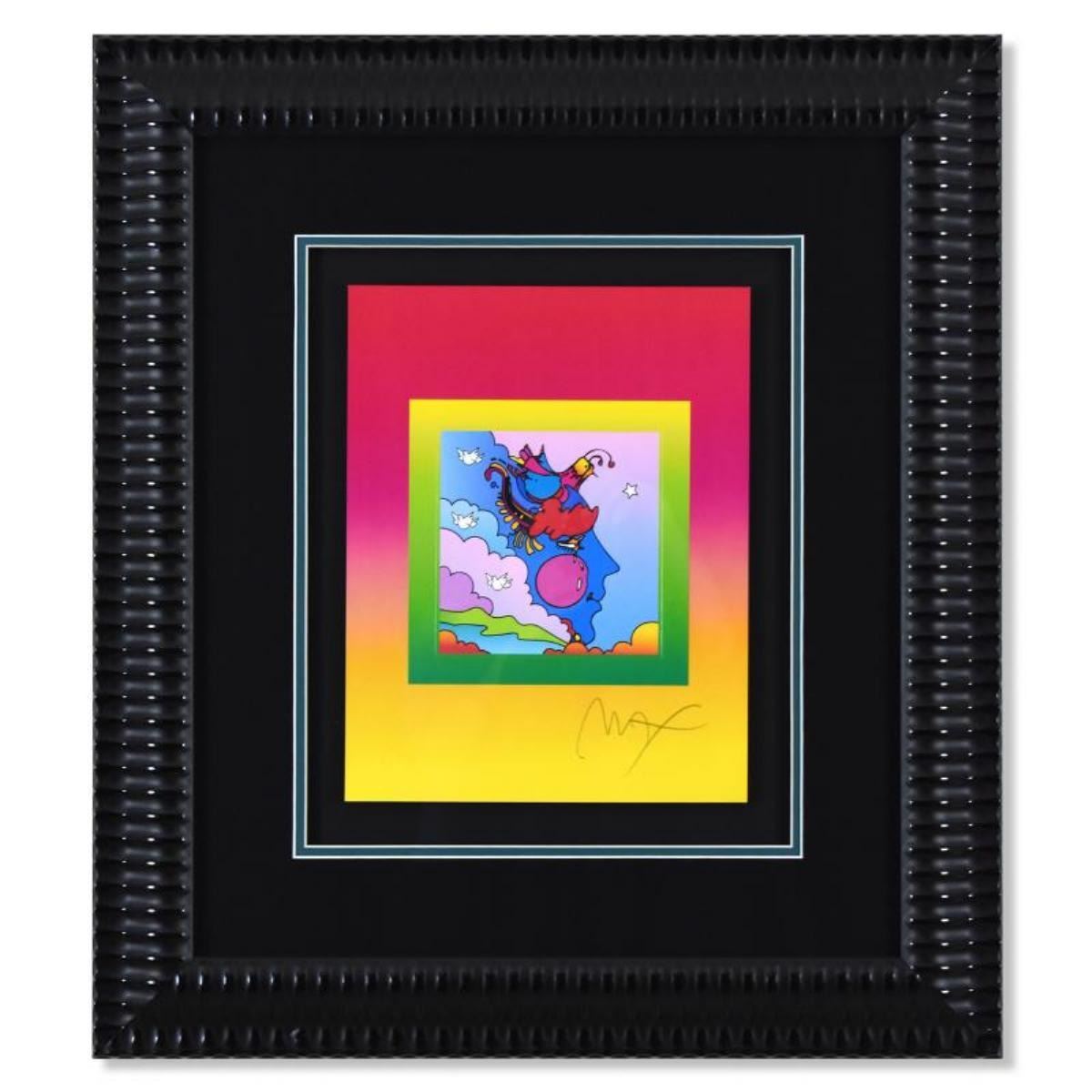 Woodstock Profile on Blends by Peter Max. "Woodstock Profile on Blends" is a limited edition lithograph on paper by Peter Max, numbered 496/500 and hand signed by the artist. This piece comes framed and includes Certificate of Authenticity from Peter Max Studios. Measures approximately 25.5" x 22.5 (frame), 13" x 10" (image).