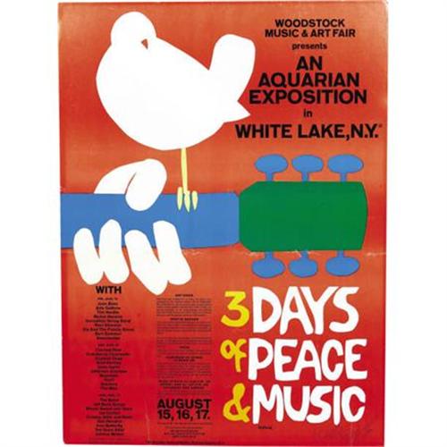 <B><I>Woodstock</B></I></B></I> <B>RIAA Gold Album Award and Poster.</B></I> Presented to producer and Woodstock co-founder Artie Kornfeld by the RIAA to commemorate the sale of 500,000 copies of the triple live album of the world's most famous Rock festival. In Excellent condition, framed to an overall size of 35.5" x 25". Also included is a rare large-format pre-concert first printing from the original promotion for the show, 24" x 36.5", and in Very Fine condition<BR><BR><b>Shipping:</b> Framed - with Glass, Large (<a target="_blank" href="http://www.heritageauctions.com/common/shipping.php">view shipping information</a>)