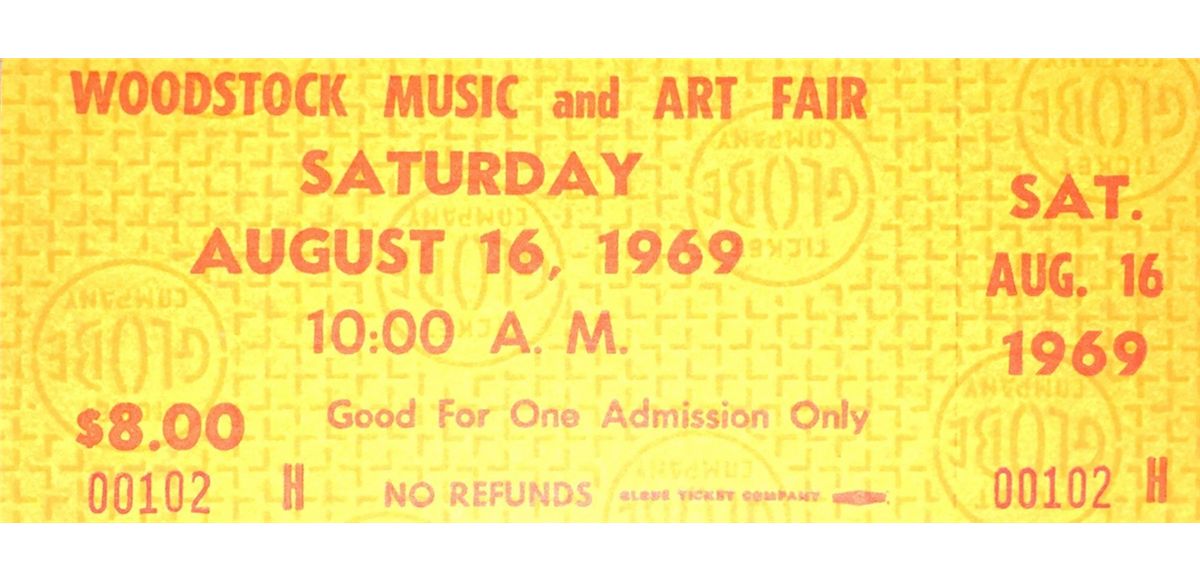 An original Saturday admission ticket to the 1969 legendary concert of all concerts with letter of authenticity