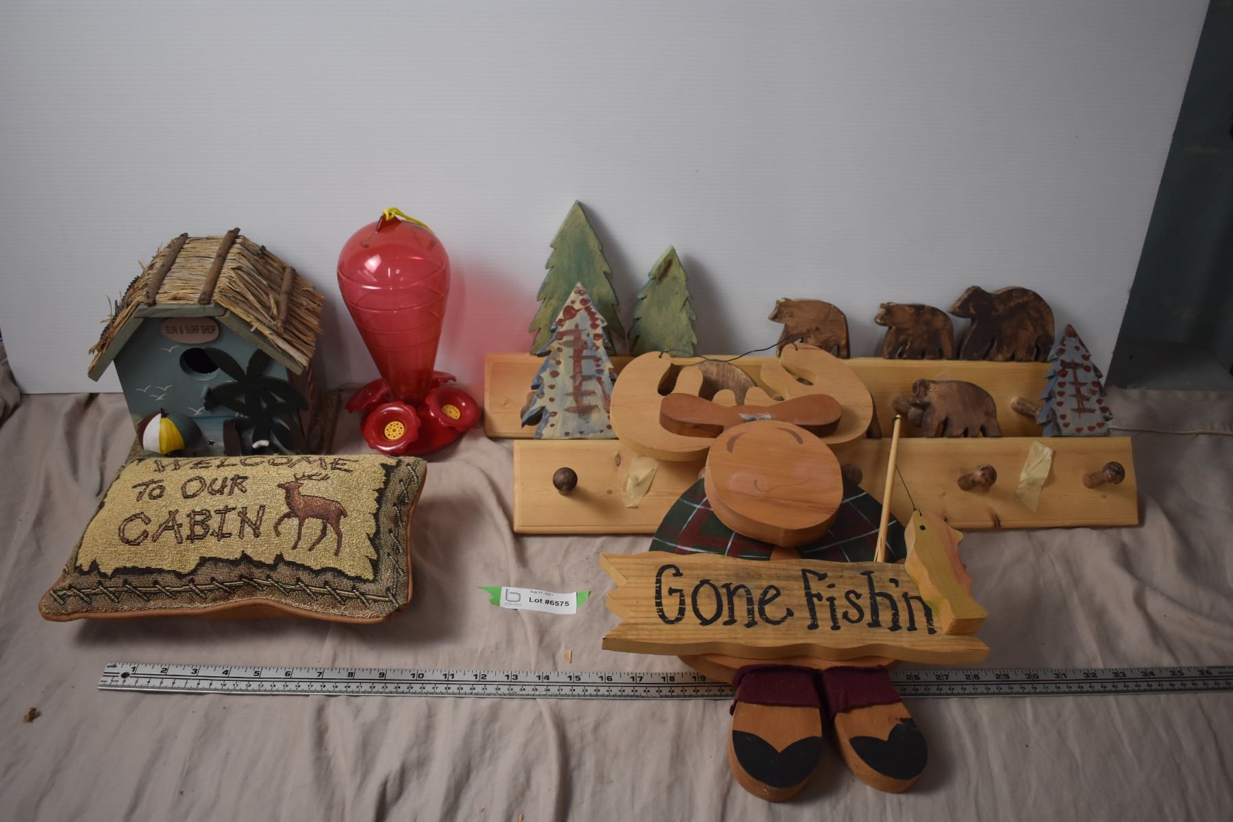 Woodwork items, Birdhouse, Hummingbird feeder, coatracks