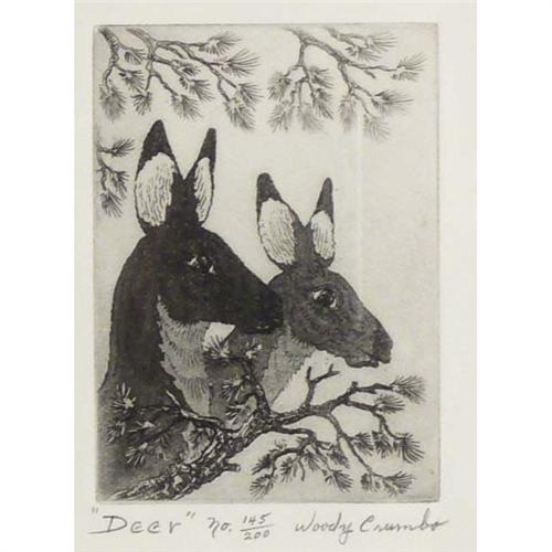 8108 Woody Crumbo (1912-1989) Etching "Deer" 145/200 Signed lower right 2 1/4" x 2 1/4"
