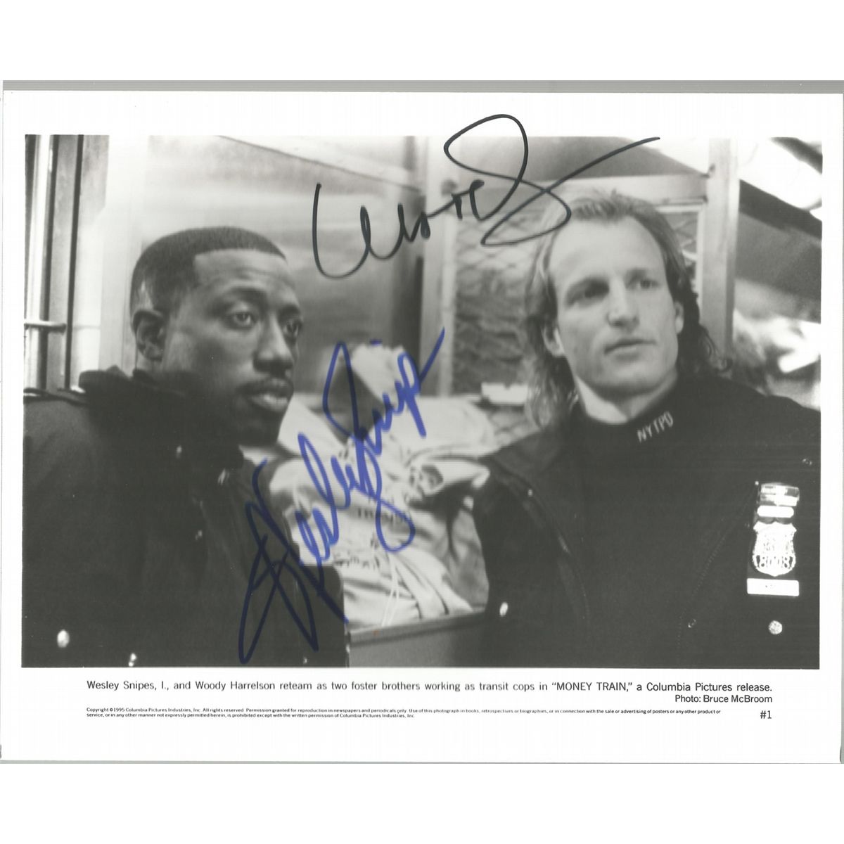 Black and White 8x10 still signed by the two stars Woody Harrelson and Wesley Snipes