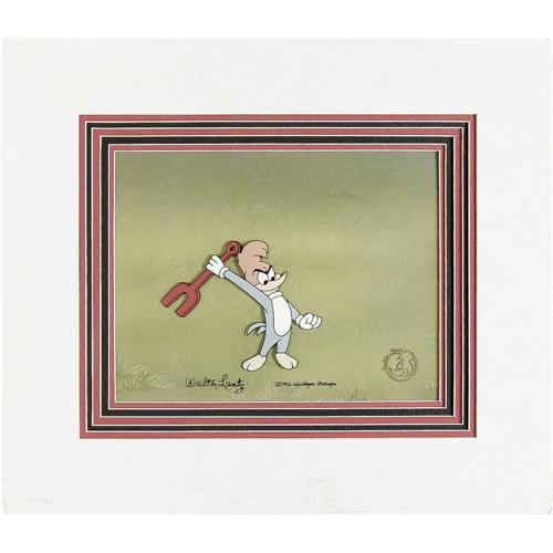 <B>Woody Woodpecker "Sleepy Time Chimes" Animation Production Cel #678 and Background Original Art, Group of 2 (Walter Lantz Productions, 1971).</B></I> This hand-inked and hand-painted animation production cel and original background painting are from Walter Lantz's short, "Sleepy Time Chimes." Each piece has an image area of 10.5" x 8". In Excellent condition. Includes Walter Lantz's signature, a Walter Lantz Productions seal, and a certificate of authenticity. <BR><BR><B>Important notice:</B> Heritage usually auctions material at the rate of 200-250 lots per hour. On some occasions eBay Live bid software or the Internet may not be able to keep up with the pace of the auction. We recommend placing a realistic absentee bid now as insurance to avoid disappointment. Occasionally the auctioneer may eliminate or reject an eBay Live bid, and the auctioneer may also reopen a lot after the close of the eBay live bidding (usually because we missed an audience bid), and may reject your bid even if it shows you as the winning bidder. By bidding via eBay Live, you agree that Heritage may award the lot to another bidder at its sole discretion under the circumstances described above or any other reasonable circumstances. Since eBay bids are not shown to us until we open the lot on the floor, we treat those bids just like floor bids. In most cases the floor responds before the eBay bid is presented to us, due to Internet lag time, so for consistency we have made it a policy that floor bids are always considered first over tie eBay live bids. Also please note that all Heritage lots purchased through eBay Live carry a 22.5% Buyer's Premium. Please make sure you read the Terms and Conditions before you bid. This lot is being auctioned in conjunction with a live floor auction by Heritage Auction Galleries. All final auction and invoice information will be supplied by Heritage Auction Galleries, and all other information should be considered preliminary. Lot:41001 <BR><BR><B>Winning Notification and Billing:</B> After the FINAL session in this auction is complete, Heritage will send e-mail and snail mail invoices. This process normally takes several days. All final auction and invoice information will be supplied by Heritage Auction Galleries, and all other information should be considered preliminary. <BR><BR>This auction will be conducted on a live auction floor and over the Internet through eBay Live. If you choose to place an absentee bid, please take a moment to <font color='#0000ff'><u><a href='http://pages.ebay.com/liveauctions/help/before/laabsentee.html'>learn how eBay Live absentee bidding works</a></u></font><font color='#000000'>