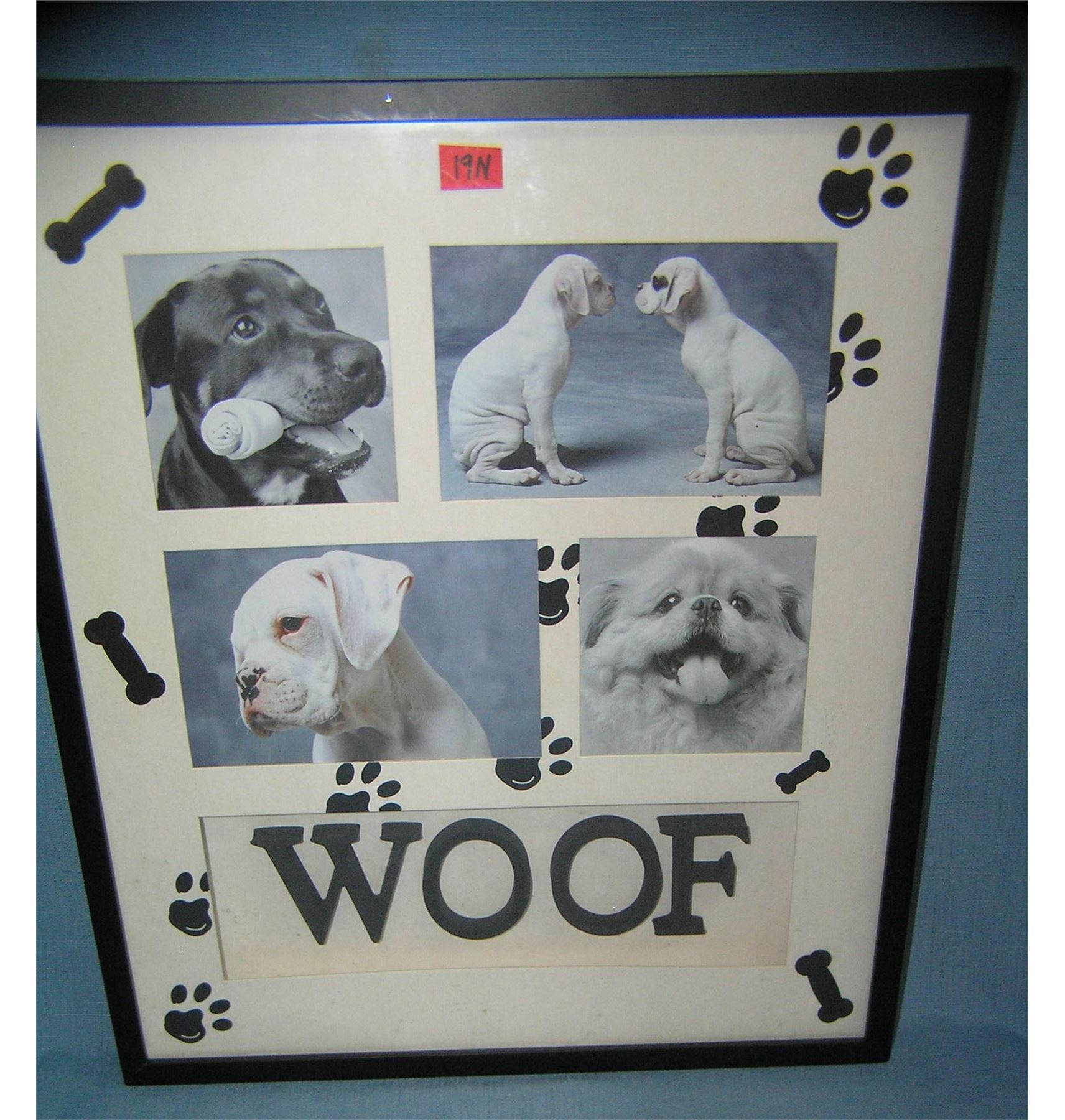 Woof dog photo diorama great photos professionally framed, can be changed for any owner's dog est. value $30.00-$35.00