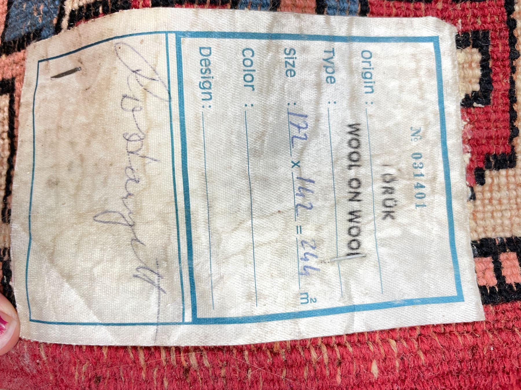 Wool on wool Rug - dimensions as per tag 172 x 142 x 244. In excellent condition