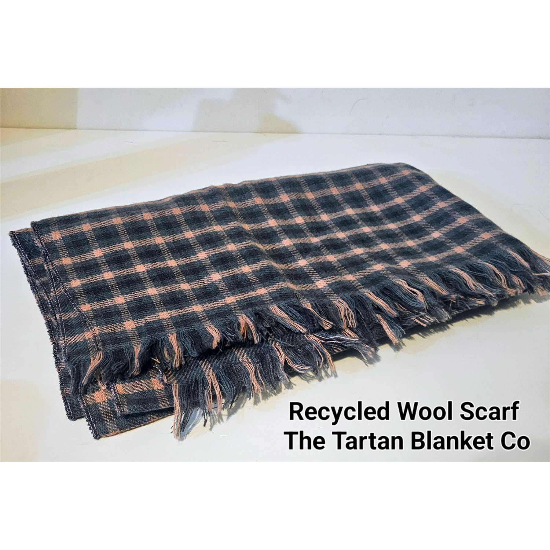 Tartan patterned, eco-friendly recycled wool scarf, warm and soft, new.