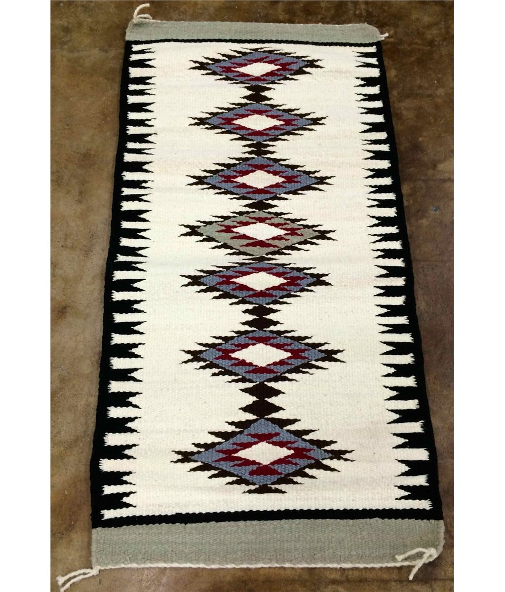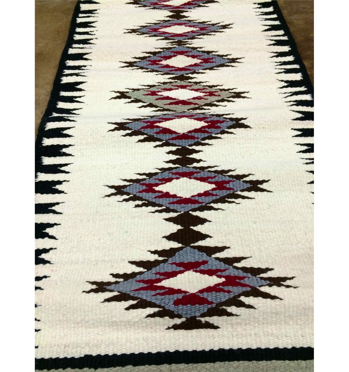 This Southwest design wool rug measures 28" x 56". It appears to be another “south of the border” style rug, but there is nothing wrong with that.
