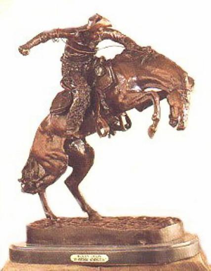 Wooly ChapsThis piece Wooly Chaps, also known as the Bronco Buster, is the updated version of The Bronco Buster. When Remington learned how to make changes in the wax, when using the Lost Wax Casting Process, it enabled him to modify and perfect previous works. Each piece cast in Lost Wax Process is individual and unique in its own way. One is never the same as each is handmade by the artist and foundry workers. We still cast these bronzes in the traditional way that Remington used 100 years ago.