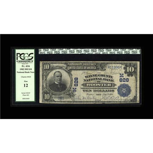 <B>Wooster, OH</B></I> - $10 1902 Date Back Fr. 616 <B>The Wayne County NB </B></I> Ch. #(M)828<BR>A well margined <B>PCGS Fine 12</B></I> from the first of four banks located here to receive its charter and one of only two that survived to the end of the note issuing era.