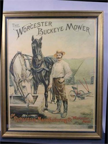 Worchester Buckeye Mower paper sign - the Richardson Manufacturing Co., Worchester, MASS. 19" x 24" Some wrinkling and creases.