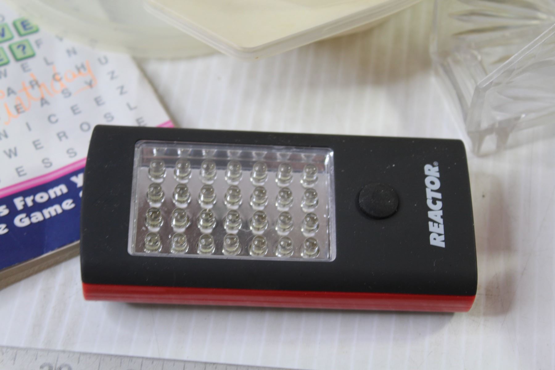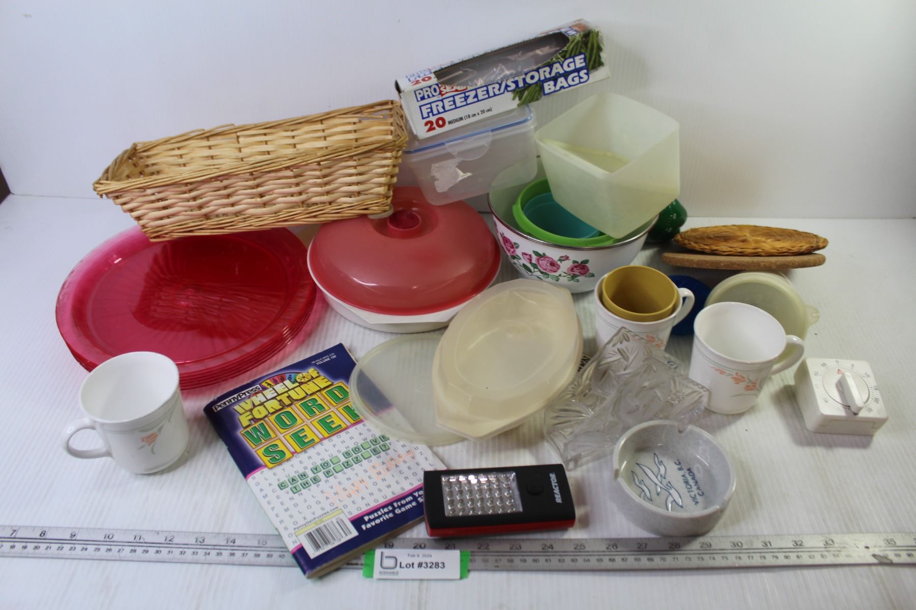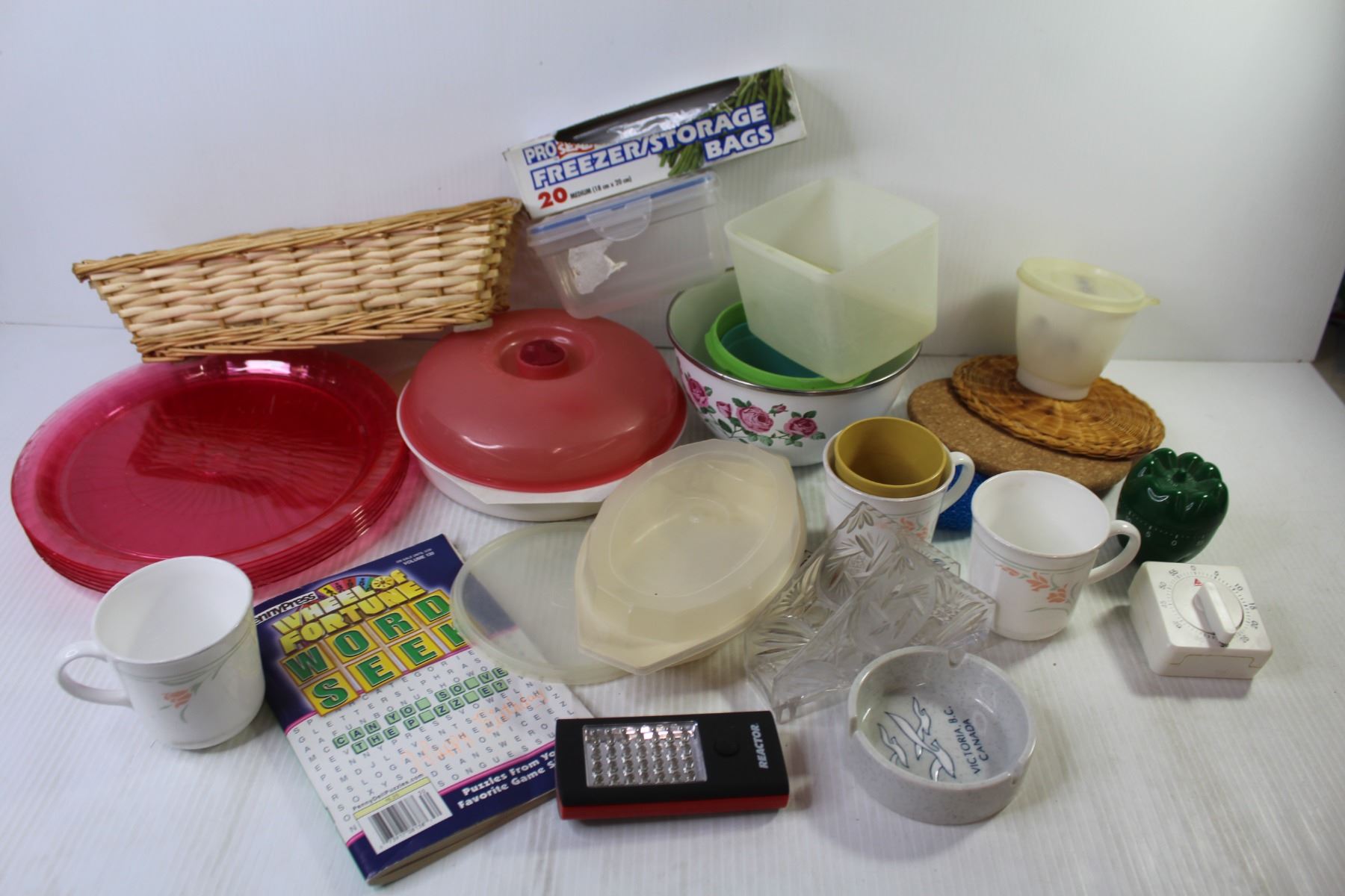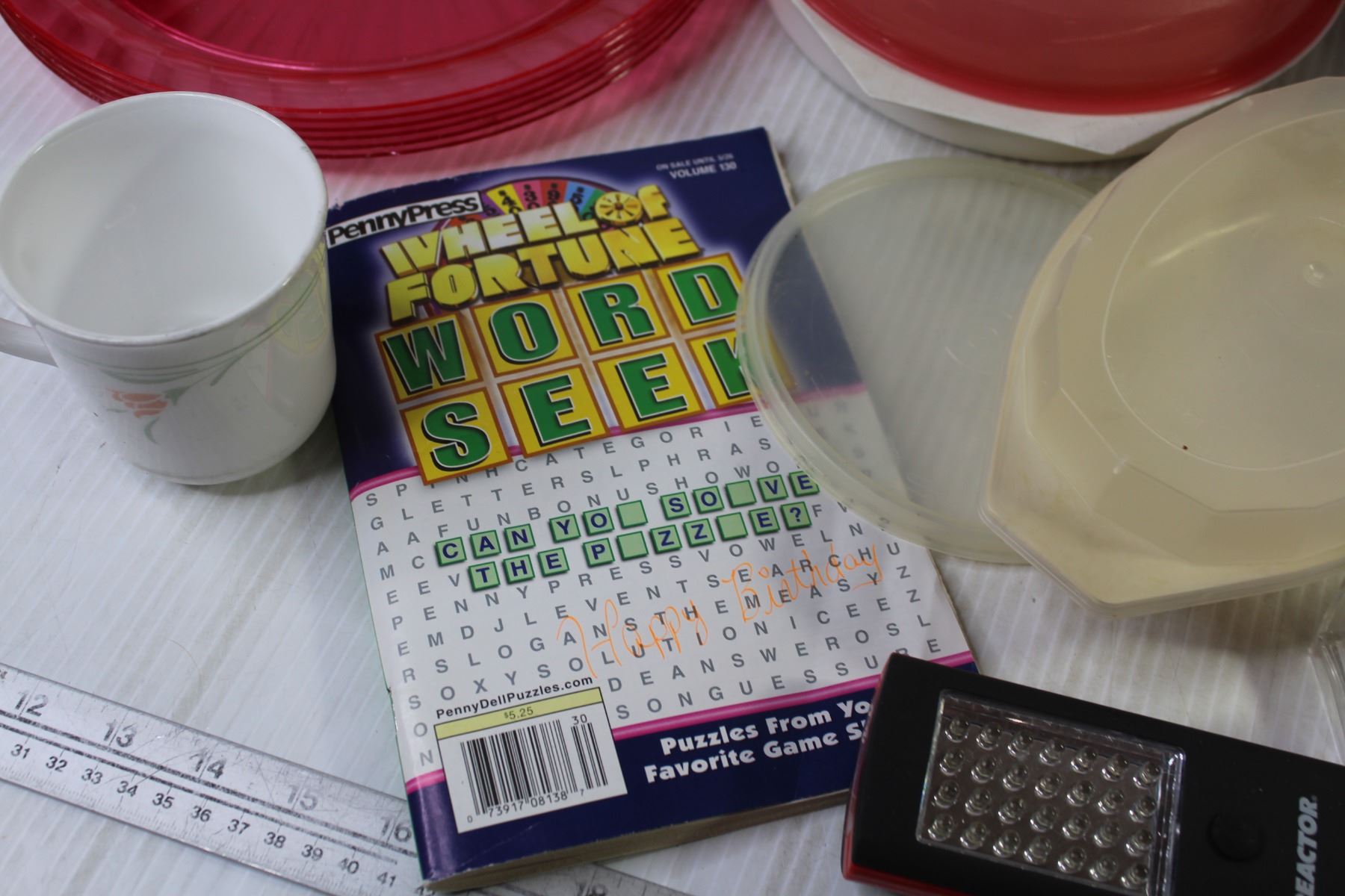 Word Seek Book - Egg Timer - Freezer Bags - Reactor Led Light (working) - Assorted Dishware - Misc. Items