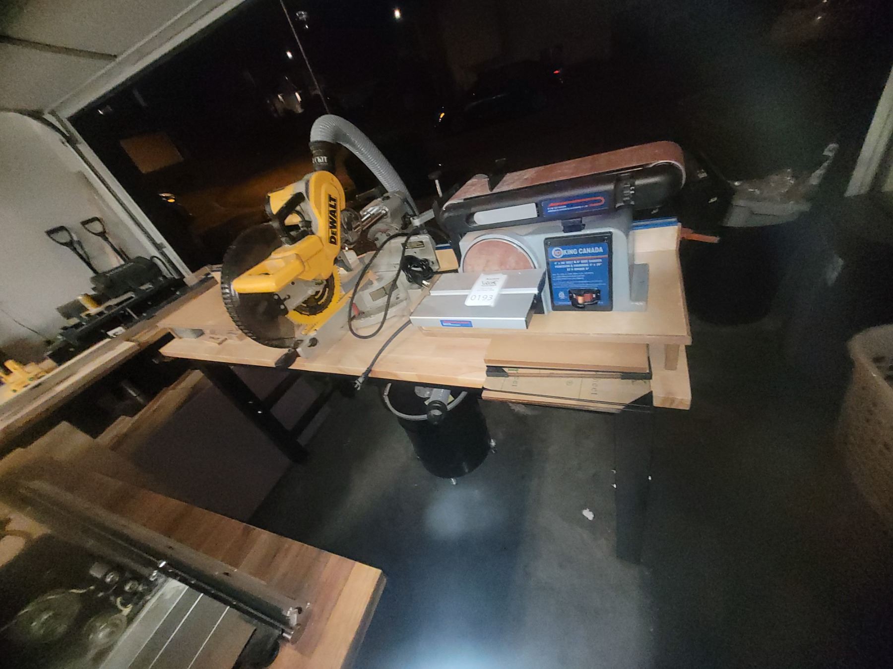 72x24x38 wood top work bench. Contents on top not included. Bring tools to dismatle, bolts are 5/8". Pickup at 11 am